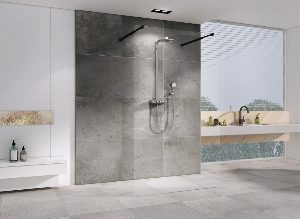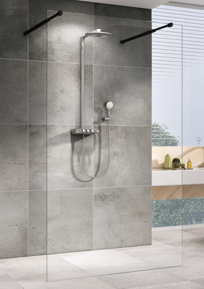 —Душевая перегородка Abber Immer Offen AG68120B8 120х200 стекло прозрачное профиль черный