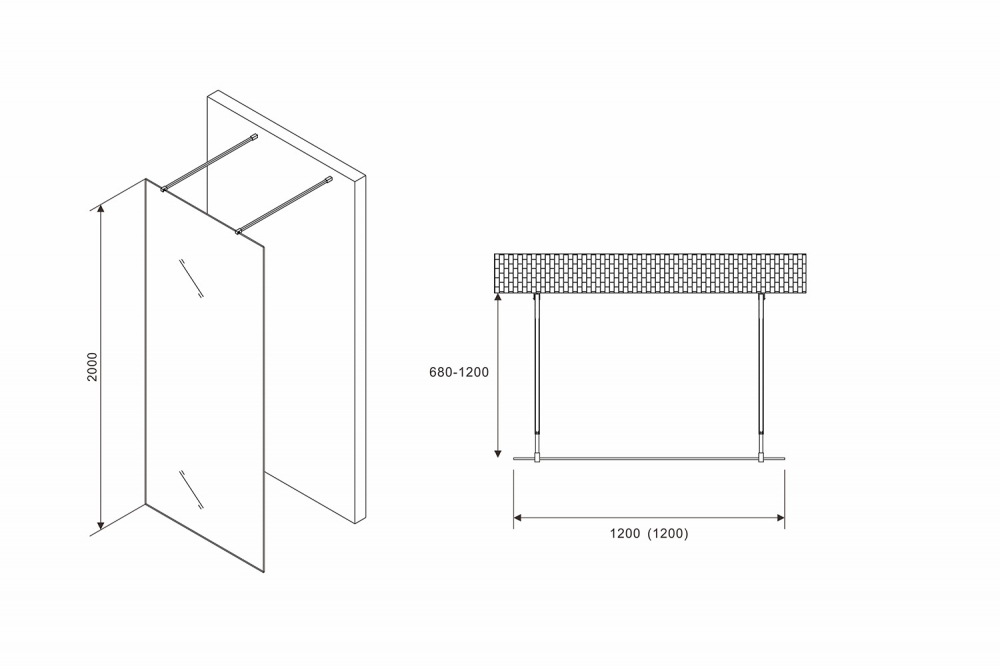 Душевая перегородка Abber Immer Offen AG68120B8 120х200 стекло прозрачное профиль черный