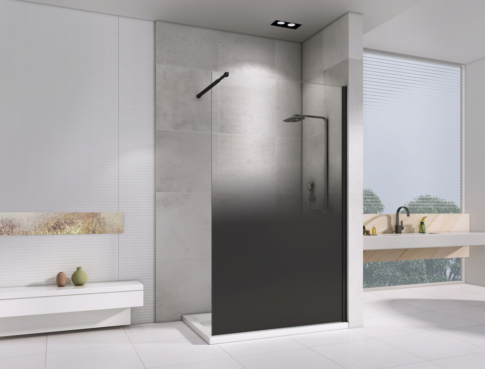 —Душевая перегородка Abber Immer Offen AG69101BD 100х200 стекло тонированное профиль черный