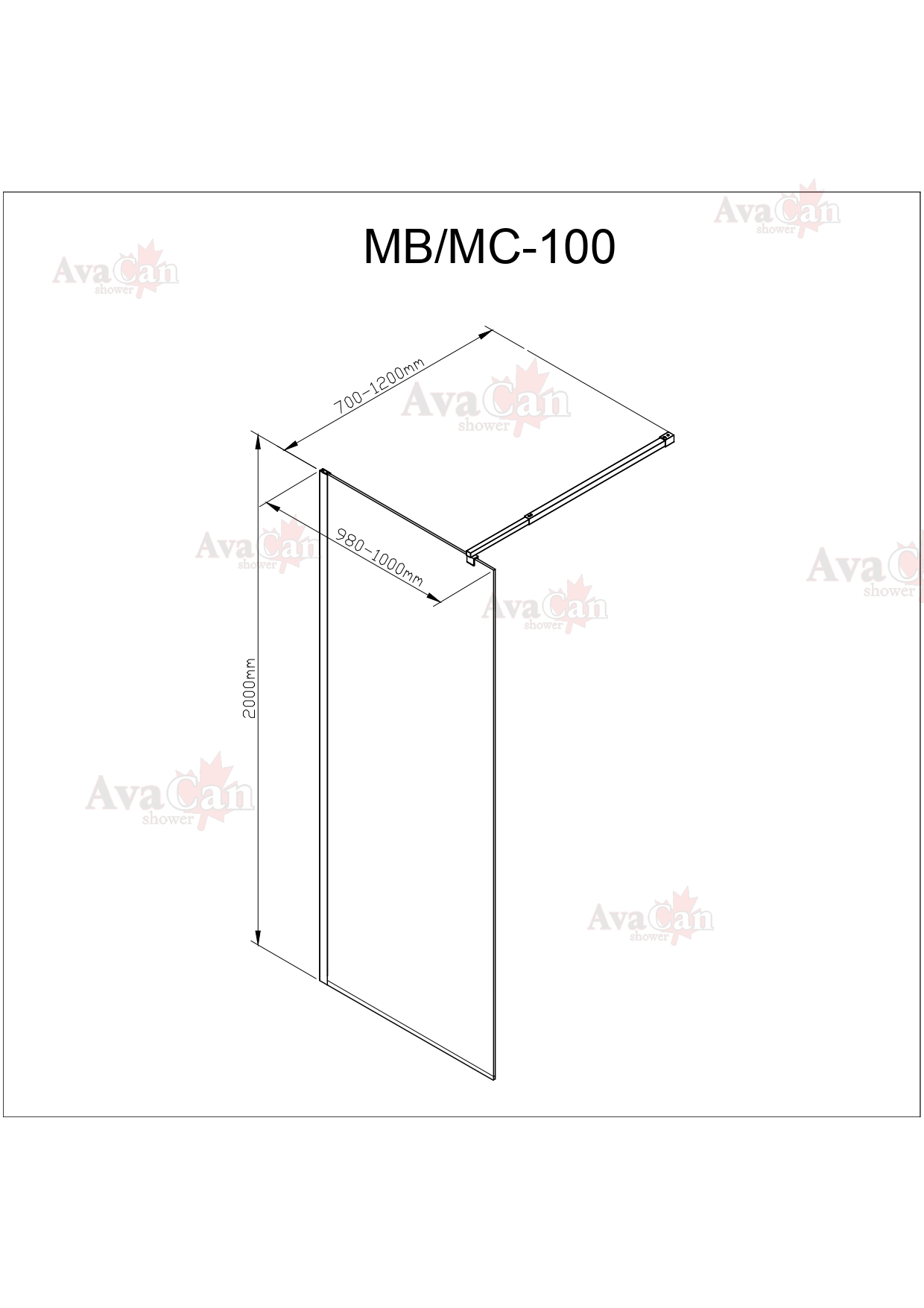 —Душевая перегородка AvaCan MC100MT 100х200 стекло матовое профиль хром глянцевый