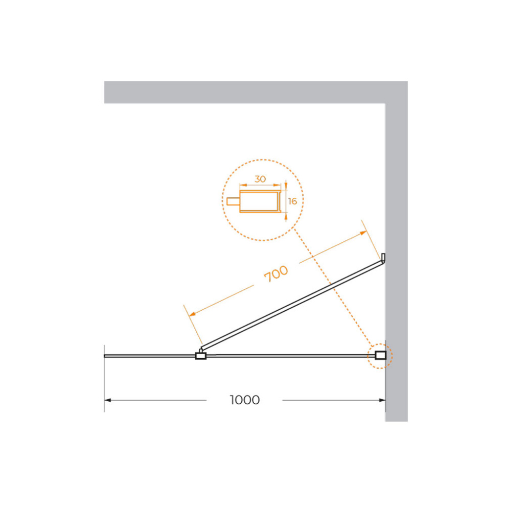 Изделия доступны к заказу с профилем и угловым кронштейном в отделке хром и черный.