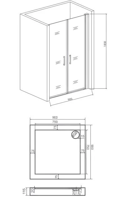 - Прямые (от стены до стены, артикул SD) – ограждения с двумя распашными дверьми: 90, 100. Не возможна установка вместе с боковой частью SP. К данной модели отдельный магнитный профиль не требуется!