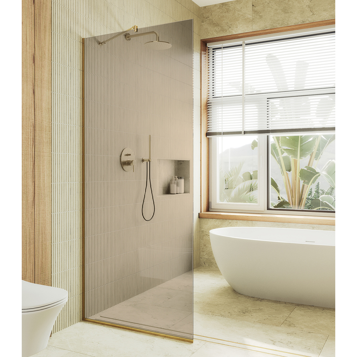 Душевая перегородка Maybah Glass MGD-1353-3у 99х195 стекло тонированное профиль золото глянцевое