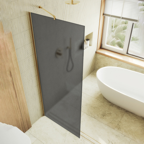 Душевая перегородка Maybah Glass MGD-1356-3ш 99х195 стекло тонированное профиль золото глянцевое
