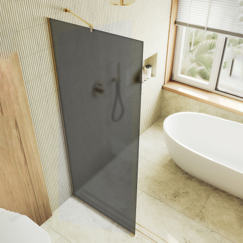 Душевая перегородка Maybah Glass MGD-1356-3у 99х195 стекло тонированное профиль золото глянцевое