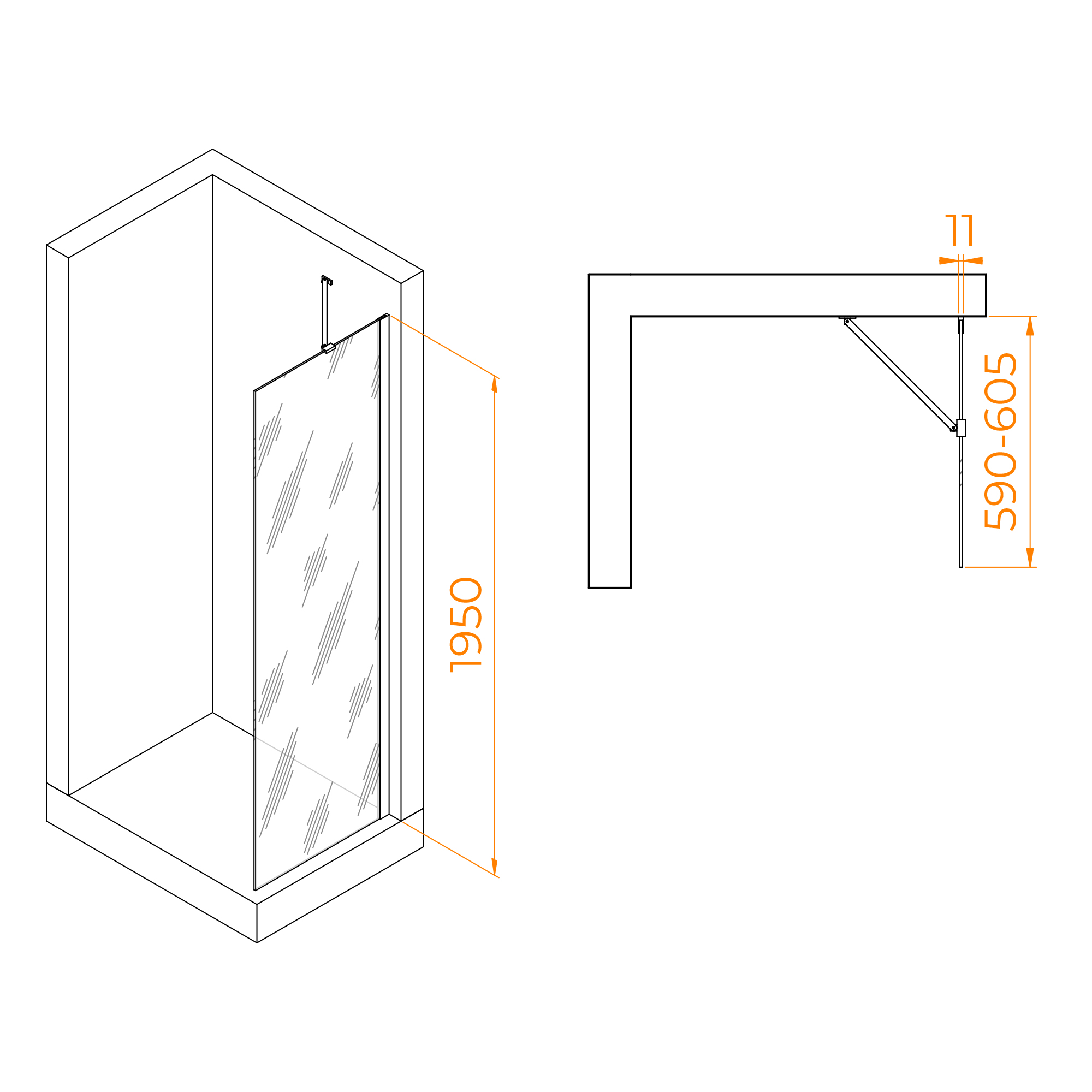 Профиль имеет цвет хром, что придает перегородке для душа современный и элегантный вид. Высота перегородки составляет 195 см, что обеспечивает комфортное использование для большинства пользователей.