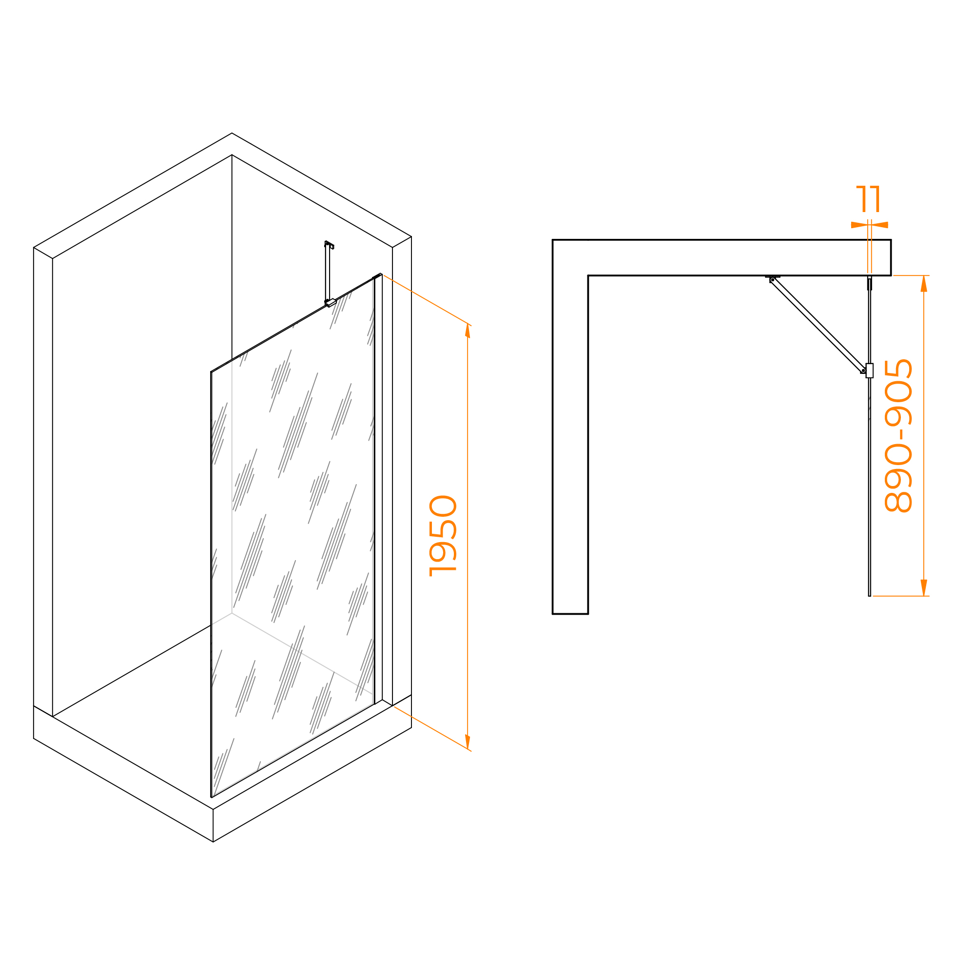 Высота перегородки составляет 195 см, что позволяет использовать данную конструкцию для большинства размеров ванной комнаты. Перегородка имеет класс герметичности 3, что обеспечивает полную защиту от проникновения воды.
