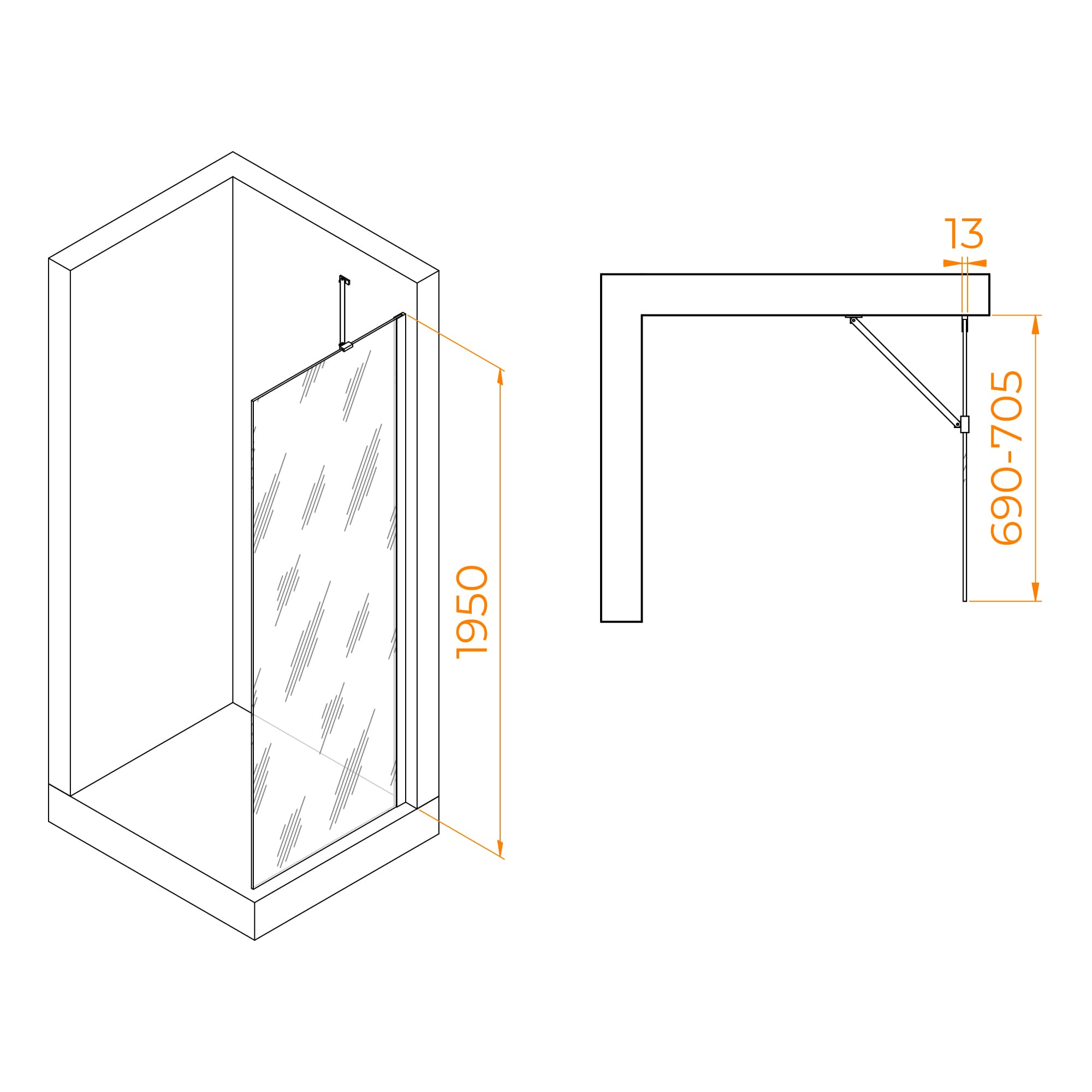 Высота перегородки составляет 195 см, что позволяет использовать ее в различных типах помещений. Благодаря классу герметичности 3, зона душа остается сухой и защищенной от воды, что является очень важным для комфортного использования.