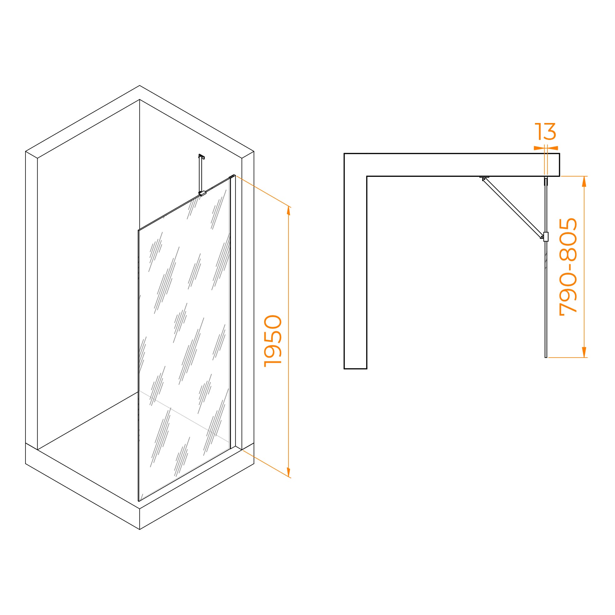 Высота перегородки составляет 195 см, что позволяет использовать ее в различных типах помещений. Благодаря классу герметичности 3, зона душа остается сухой и защищенной от воды, что является очень важным для комфортного использования.