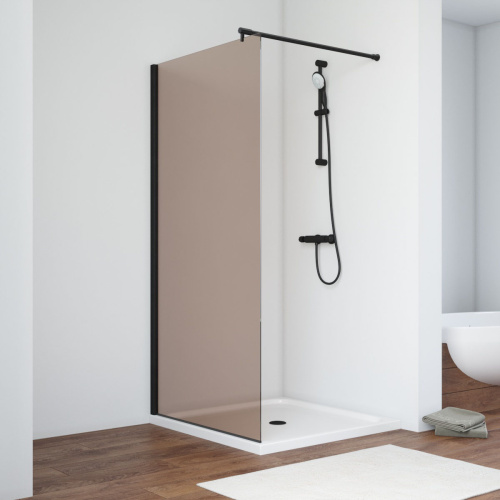 Душевая перегородка Vegas-Glass EAF TUR+NOVO EAF NOVO h2000 96 02М 05 96х200 стекло тонированное профиль черный матовый