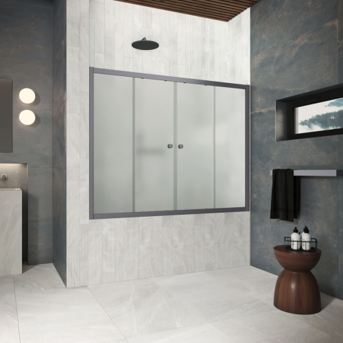 —Душевая шторка на ванну Vegas-Glass Z2V Protec Z2V Protec 165 06 10 165х140 стекло матовое профиль вороненая сталь ориентация универсальная