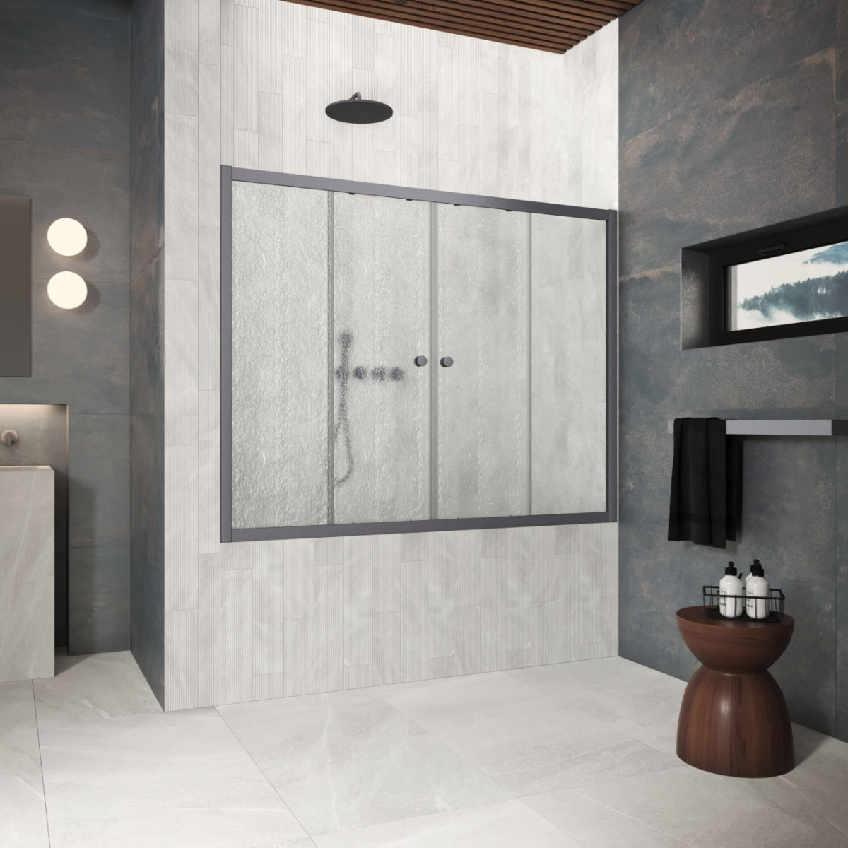 —Душевая шторка на ванну Vegas-Glass Z2V Protec Z2V Protec 190 06 02 190х140 стекло рифленое профиль вороненая сталь ориентация универсальная