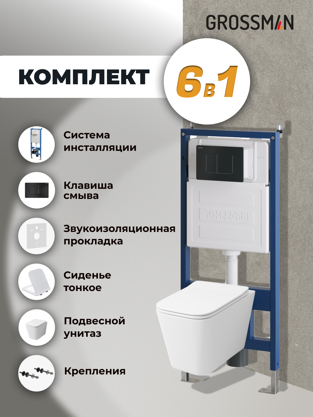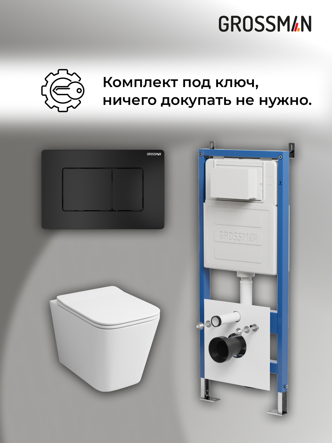 —Инсталляция + кнопка смыва + унитаз Grossman Classic 97.4441S.04.21M