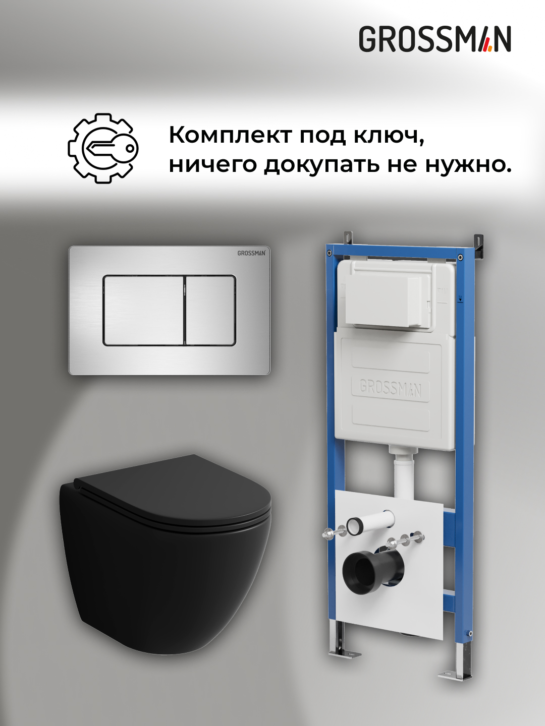 —Инсталляция + кнопка смыва + унитаз Grossman Classic 97.4455BMS.04.12M