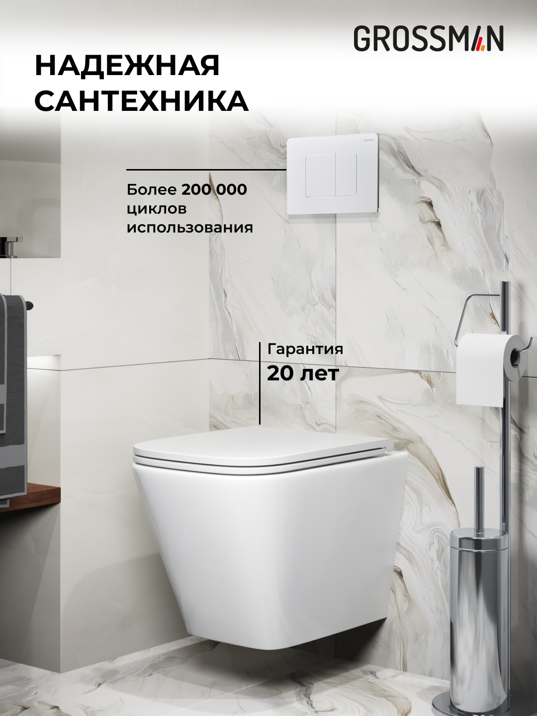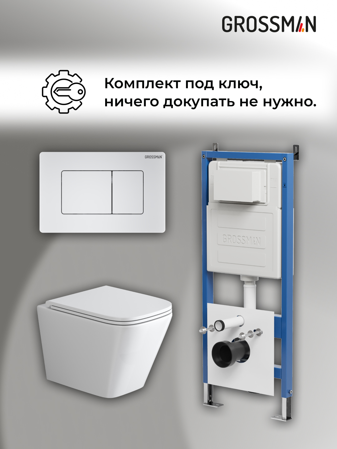 —Инсталляция + кнопка смыва + унитаз Grossman Classic 97.4479SQ.04.01M