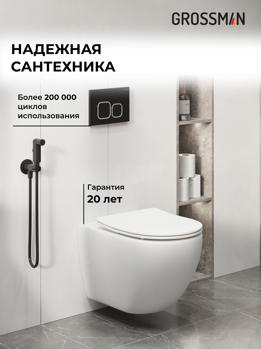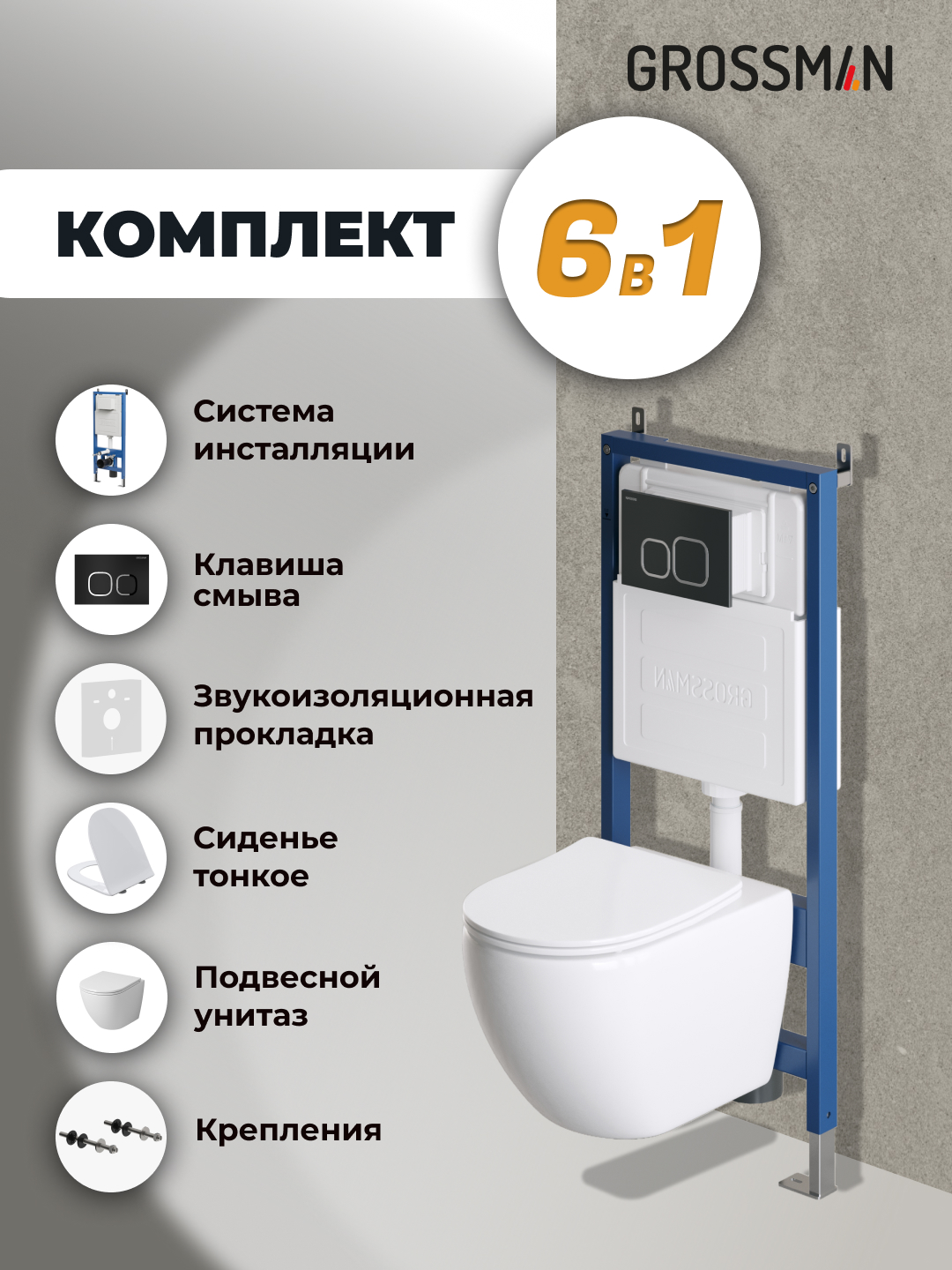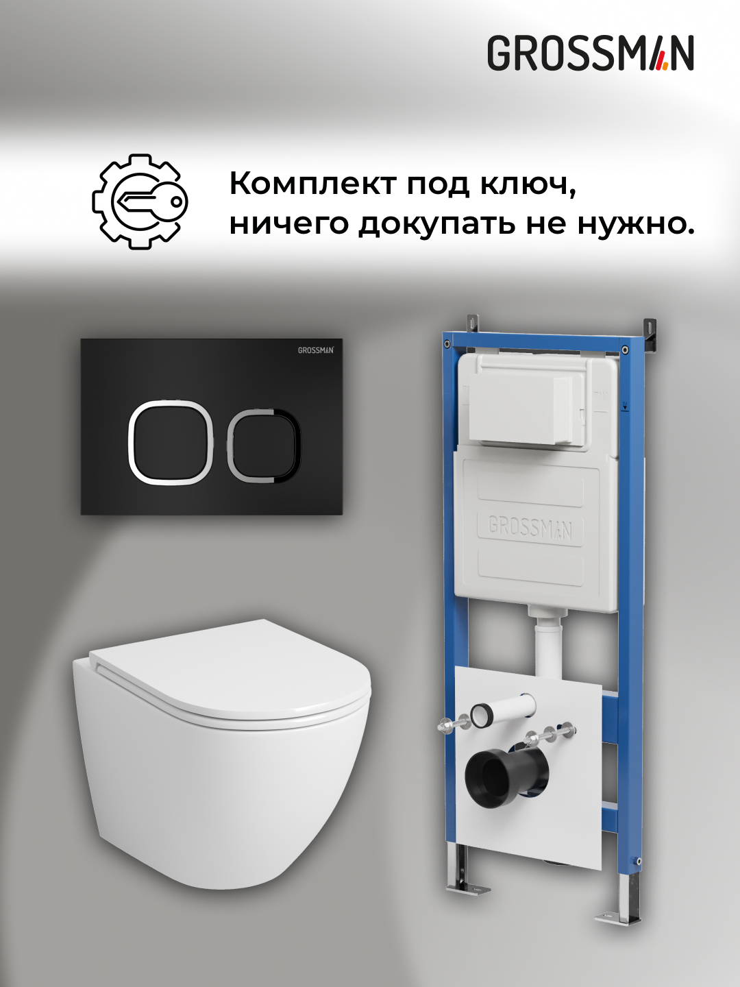 —Инсталляция + кнопка смыва + унитаз Grossman Cosmo 97.4411SQ.02.210