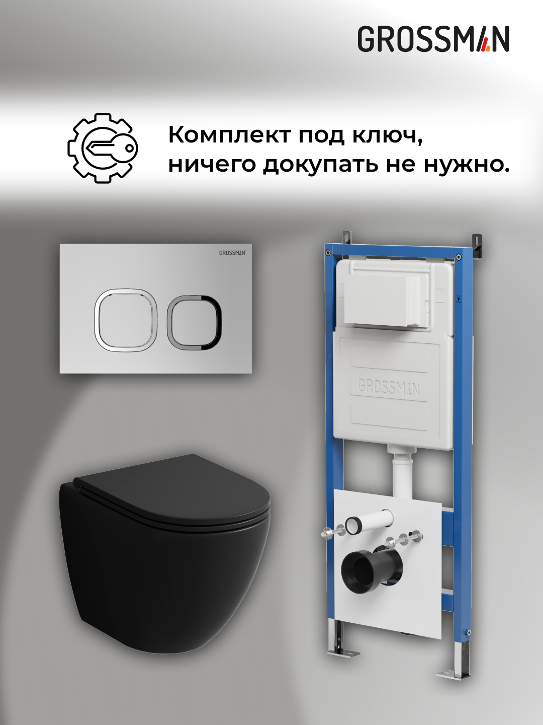 —Инсталляция + кнопка смыва + унитаз Grossman Cosmo 97.4455BMSQ.02.110