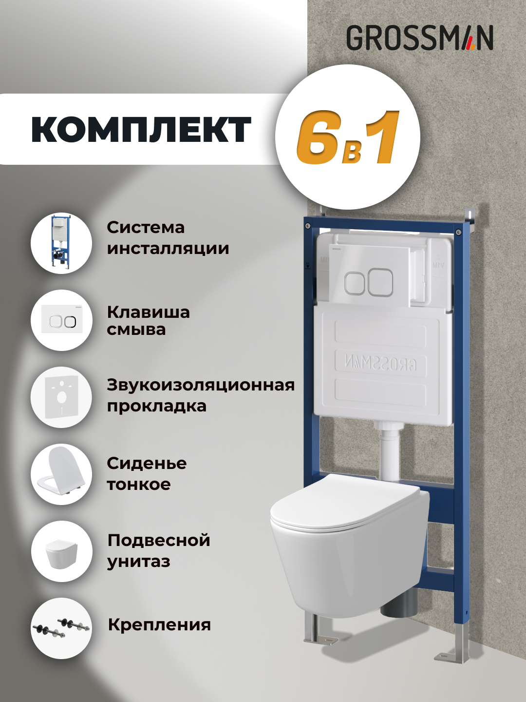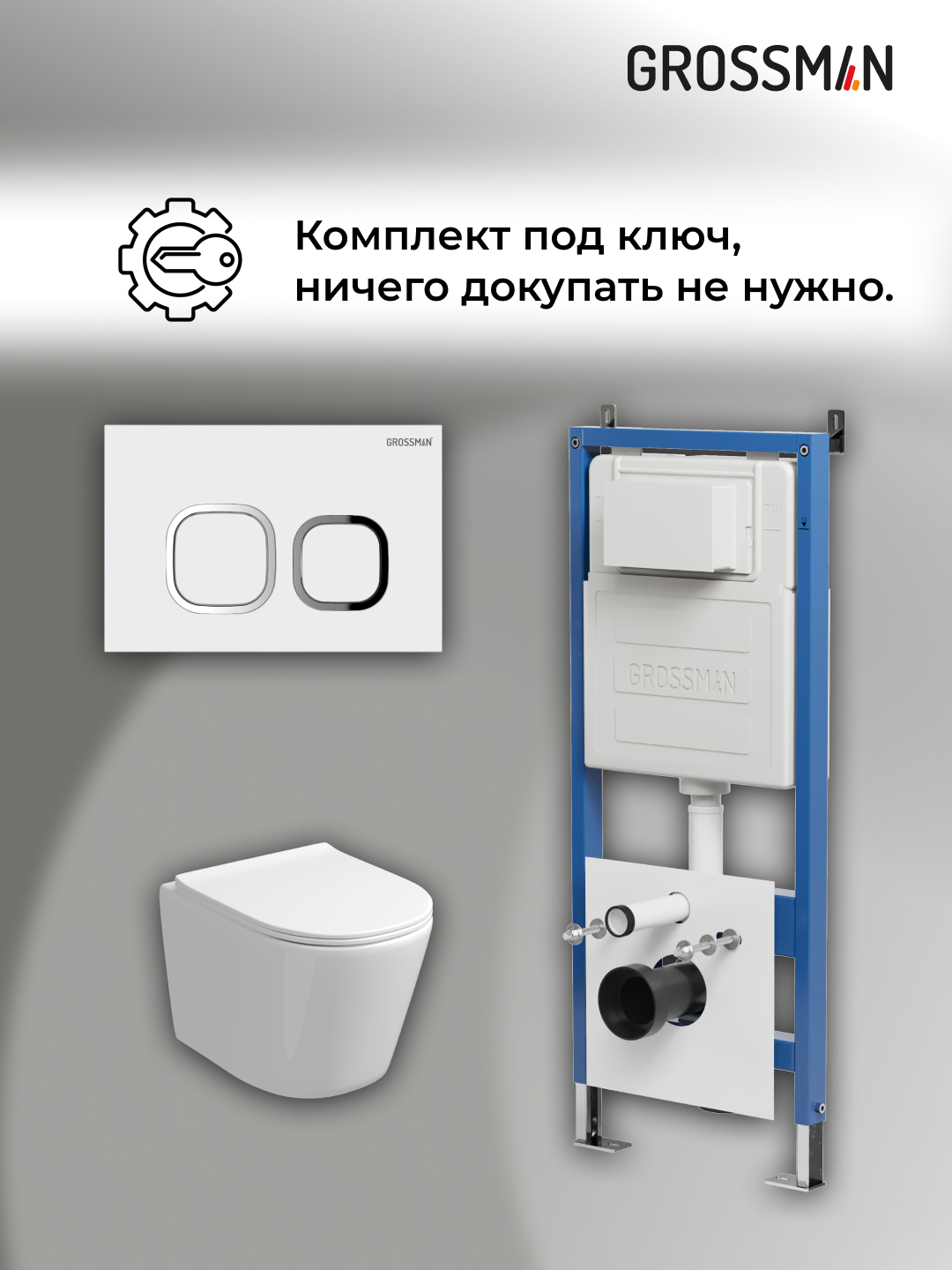 —Инсталляция + кнопка смыва + унитаз Grossman Cosmo 97.4477SQ.02.000