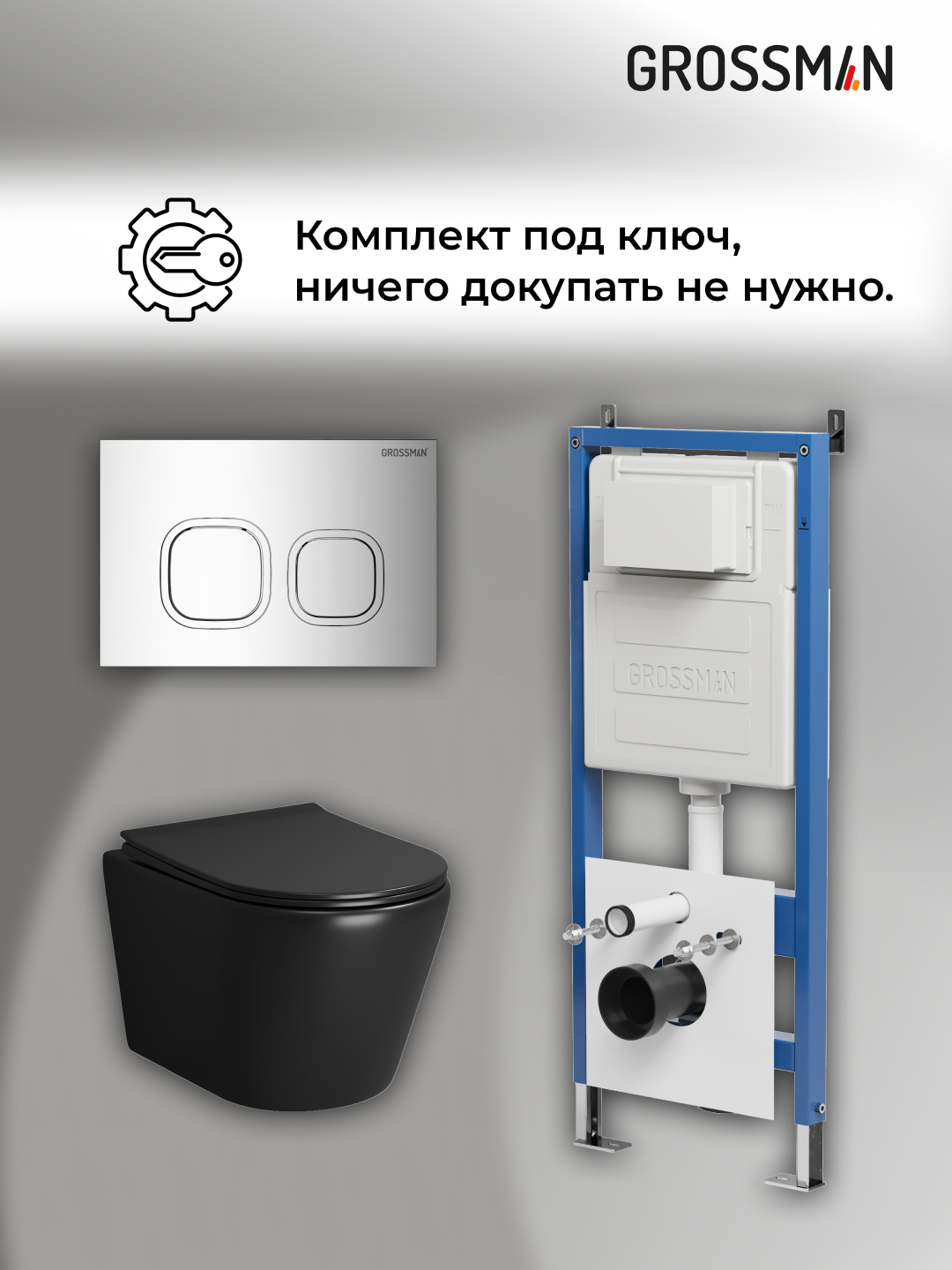 —Инсталляция + кнопка смыва + унитаз Grossman Cosmo 97.4478BMS.02.100