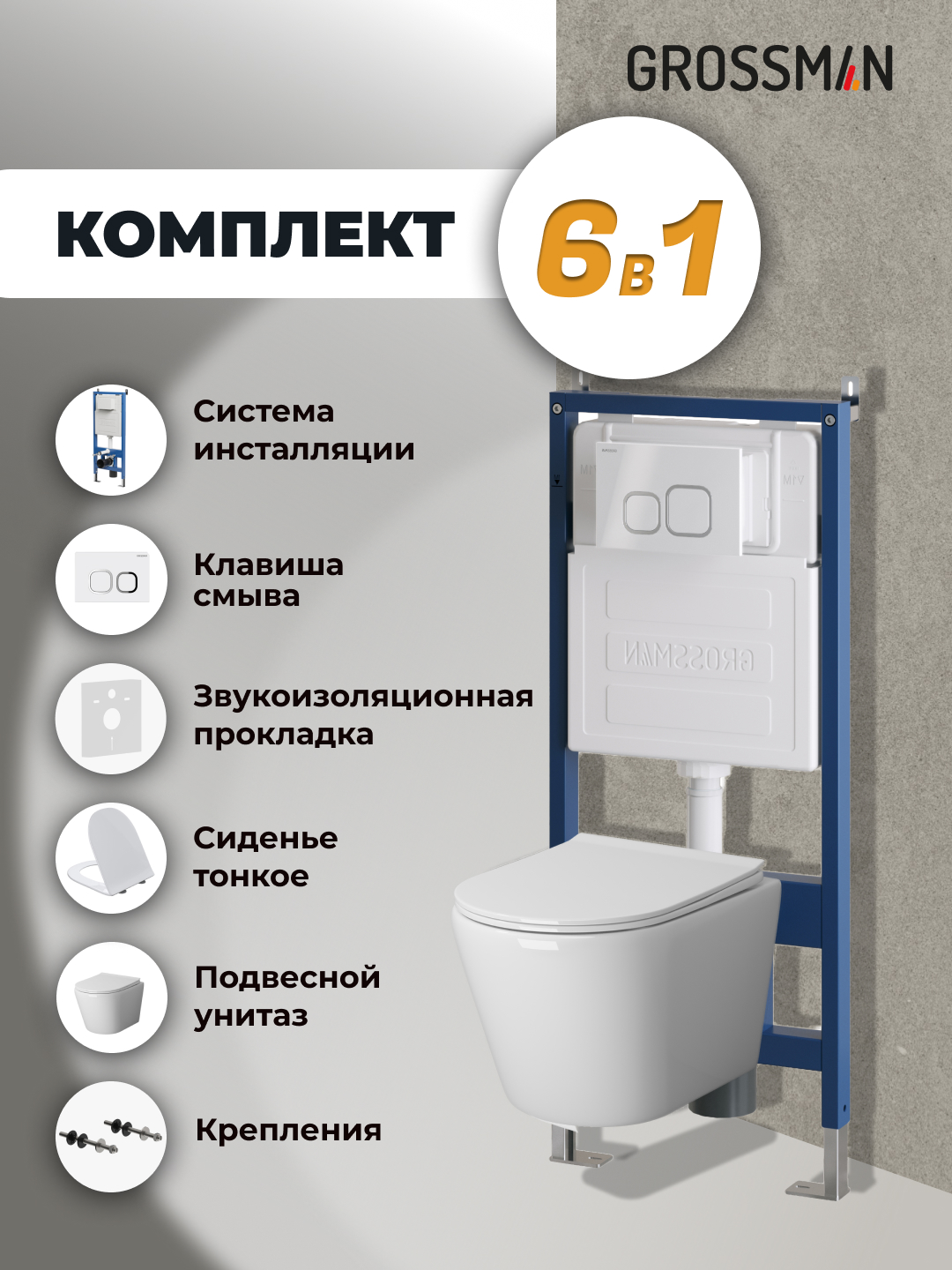 —Инсталляция + кнопка смыва + унитаз Grossman Cosmo 97.4478S.02.000