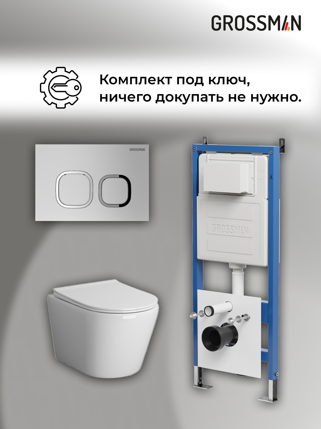 —Инсталляция + кнопка смыва + унитаз Grossman Cosmo 97.4478SQ.02.110