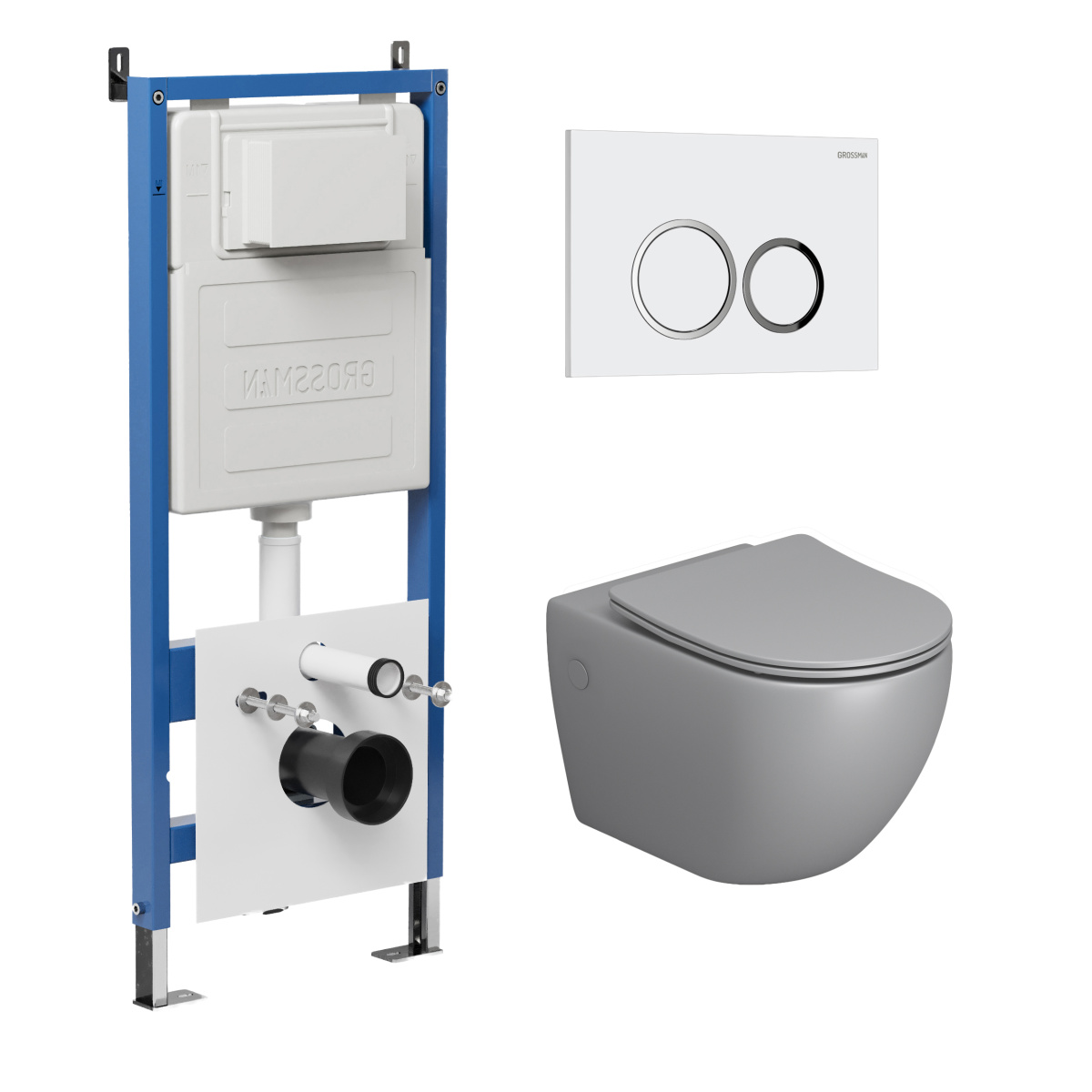 —Инсталляция + кнопка смыва + унитаз Grossman Galaxy 97.4411SQ.01.000