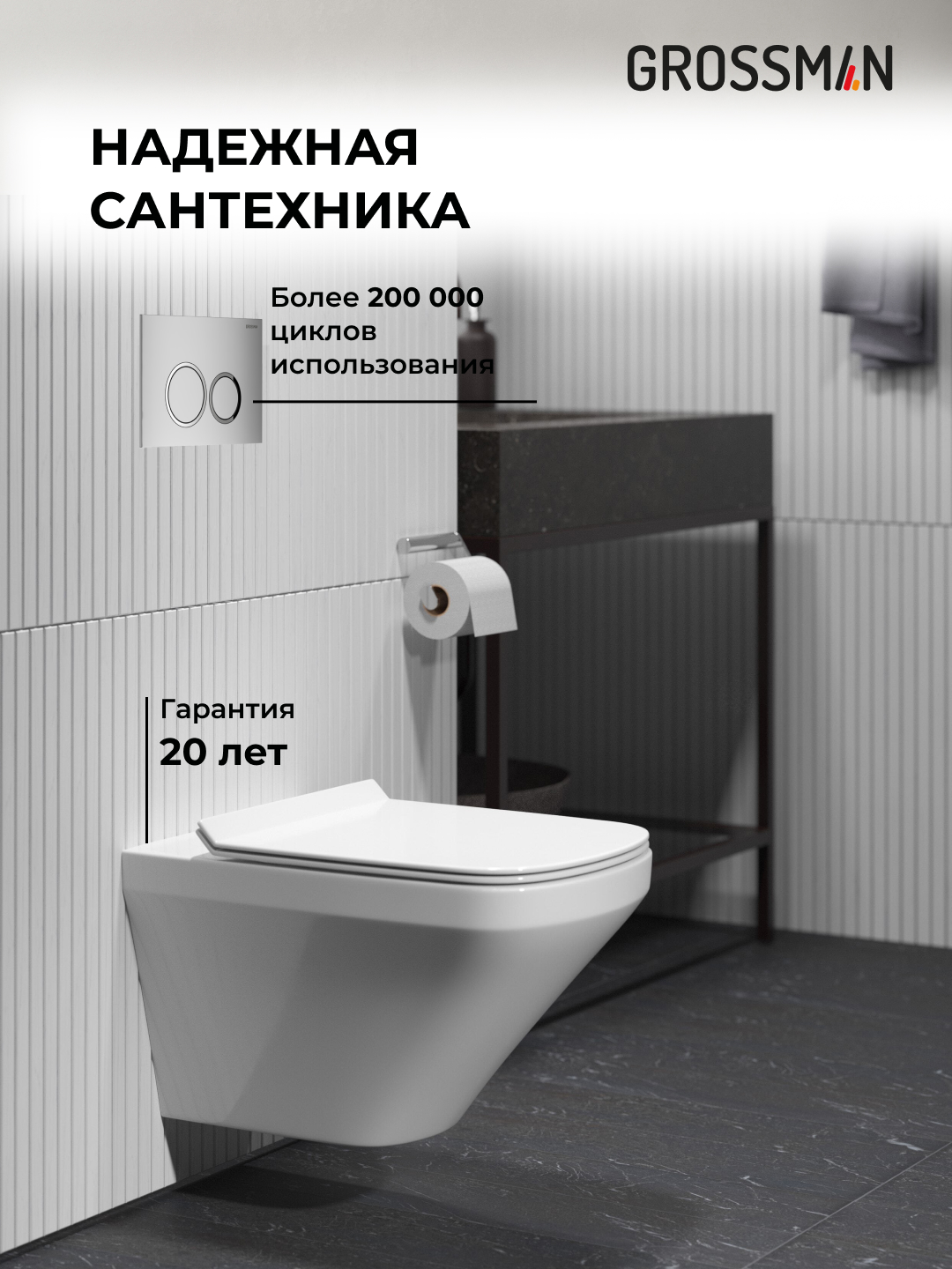—Инсталляция + кнопка смыва + унитаз Grossman Galaxy 97.4440S.01.110