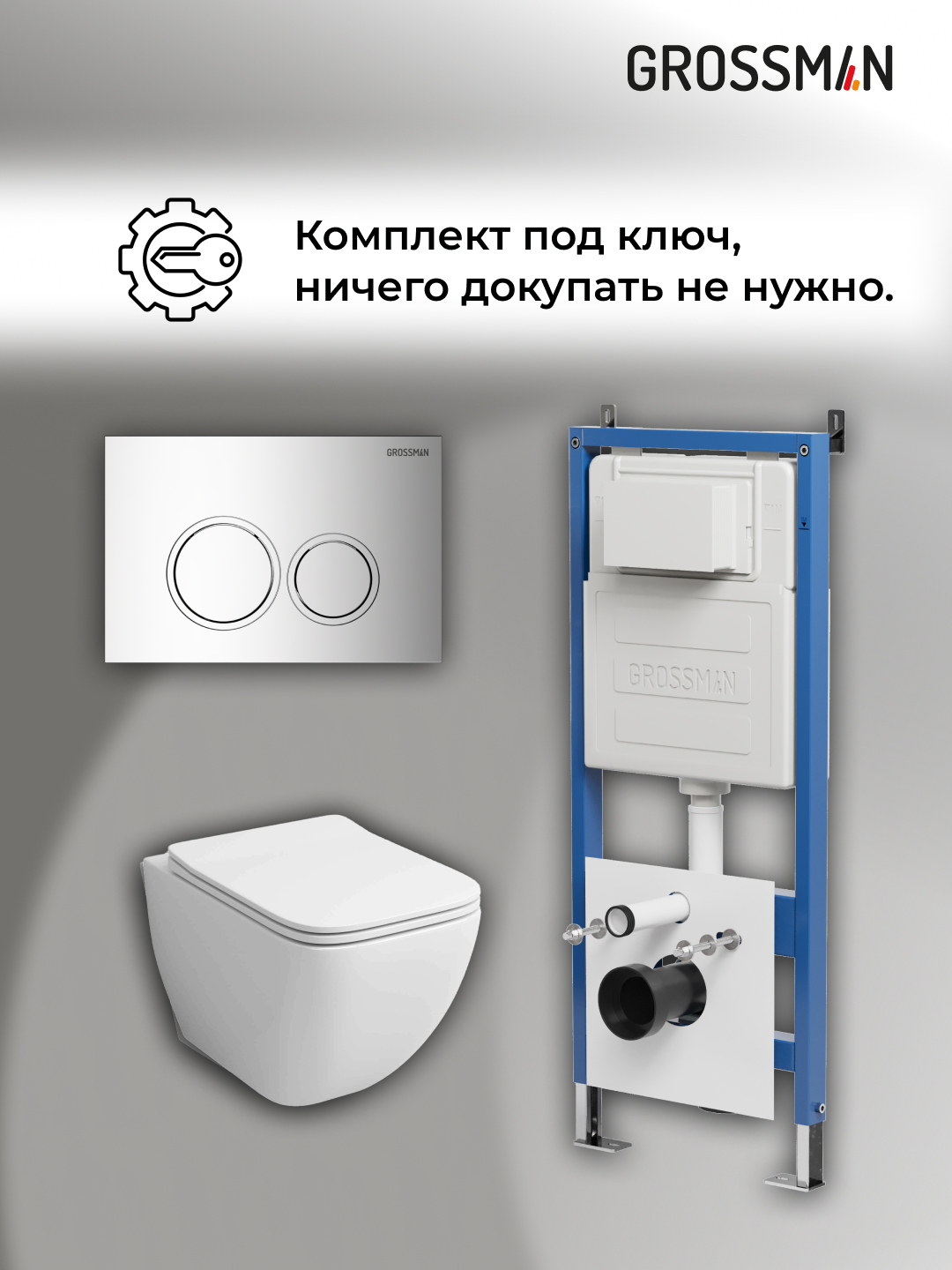 —Инсталляция + кнопка смыва + унитаз Grossman Galaxy 97.4447S.01.100