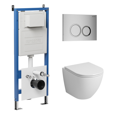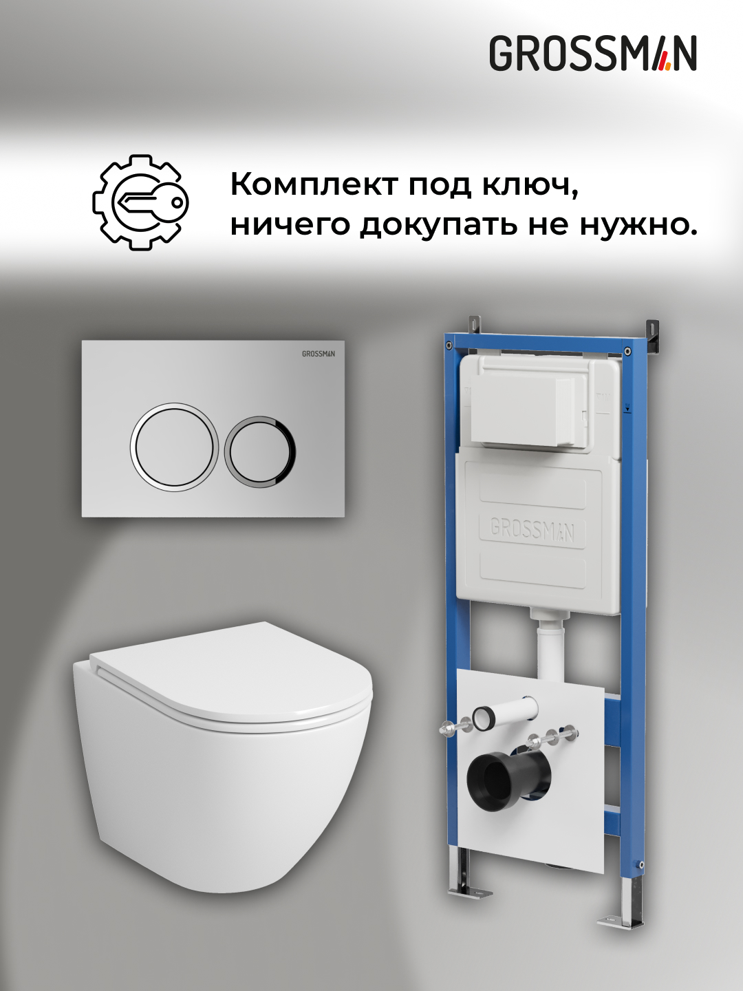—Инсталляция + кнопка смыва + унитаз Grossman Galaxy 97.4455SQ.01.110