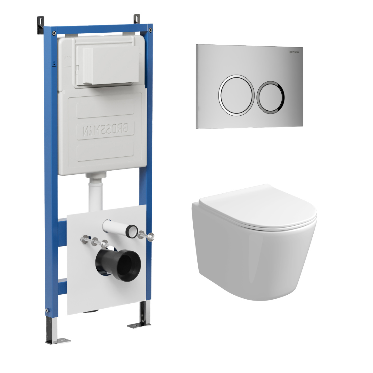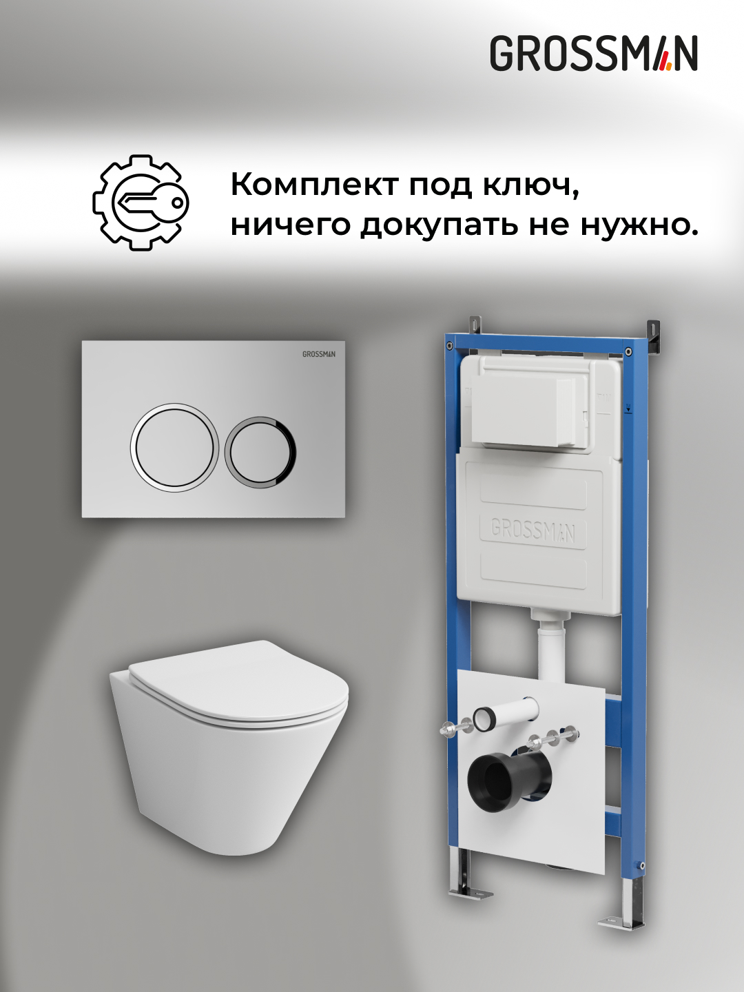 —Инсталляция + кнопка смыва + унитаз Grossman Galaxy 97.4477S.01.110