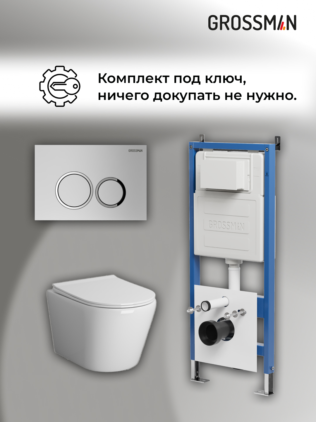 —Инсталляция + кнопка смыва + унитаз Grossman Galaxy 97.4478S.01.110