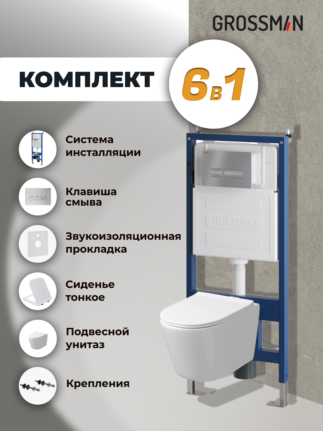 —Инсталляция + кнопка смыва + унитаз Grossman Pragma 97.4477SQ.03.110