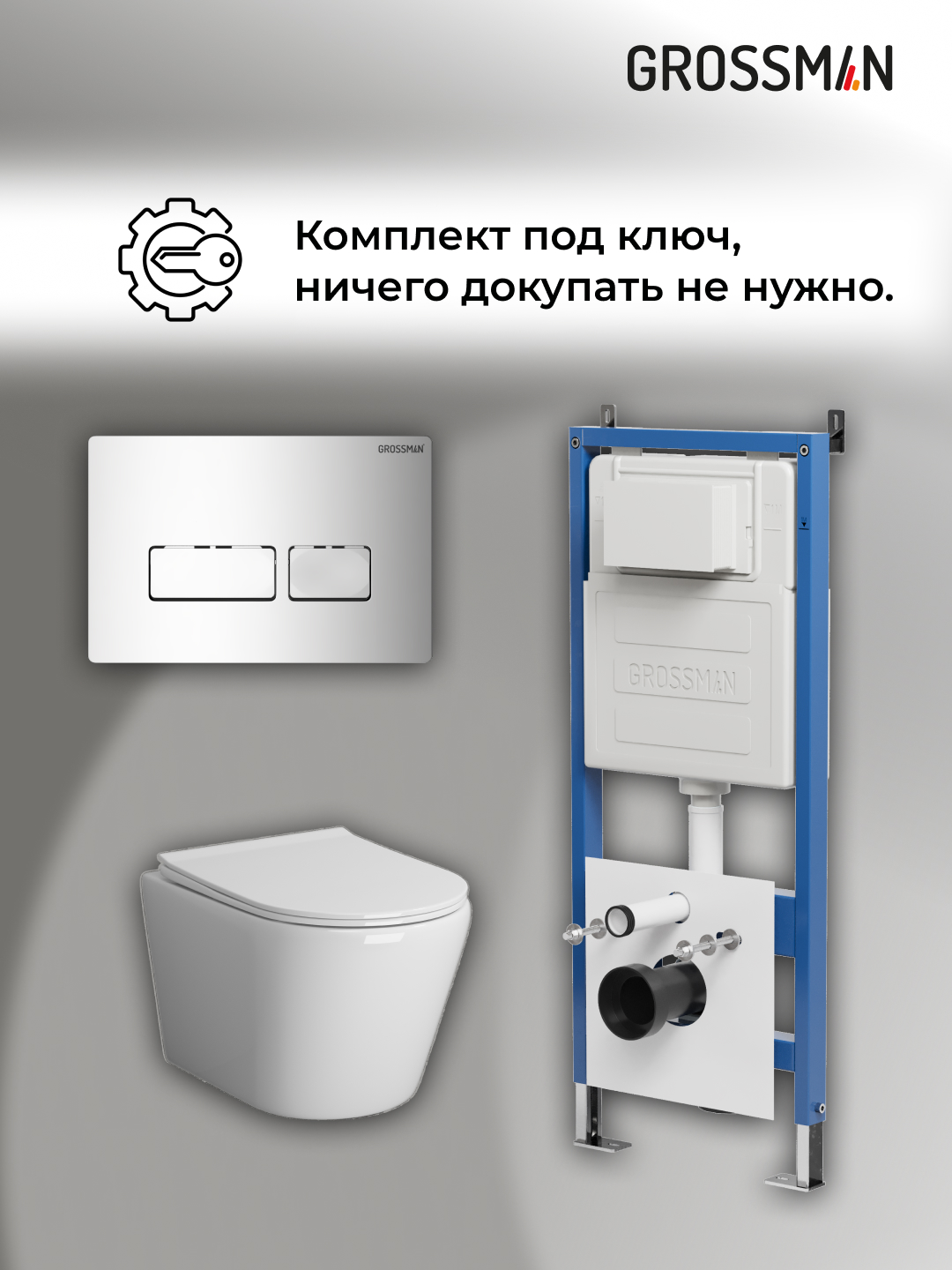 —Инсталляция + кнопка смыва + унитаз Grossman Pragma 97.4478SQ.03.100