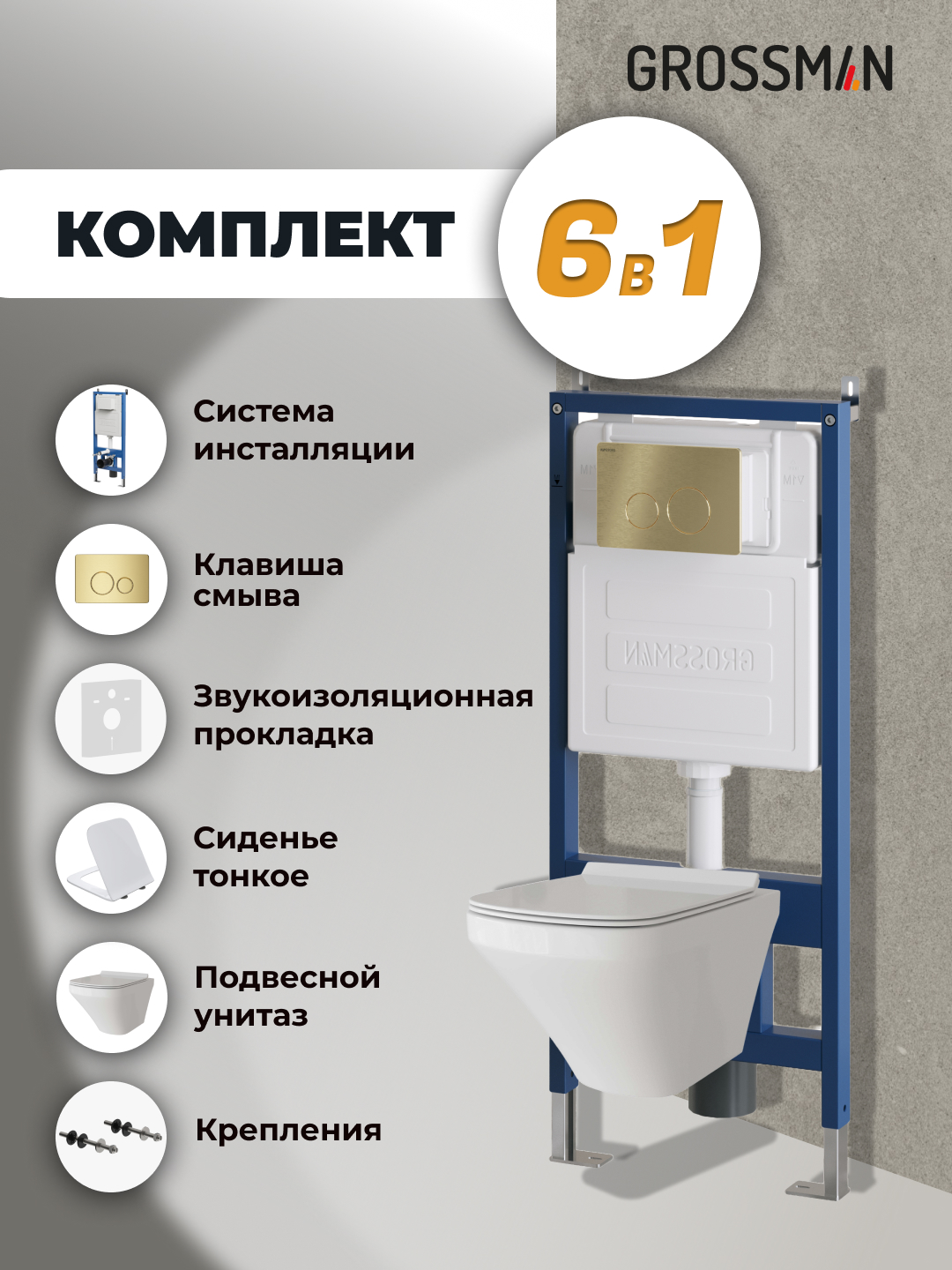 Инсталляция + кнопка смыва + унитаз Grossman Style 97.4440S.05.32M