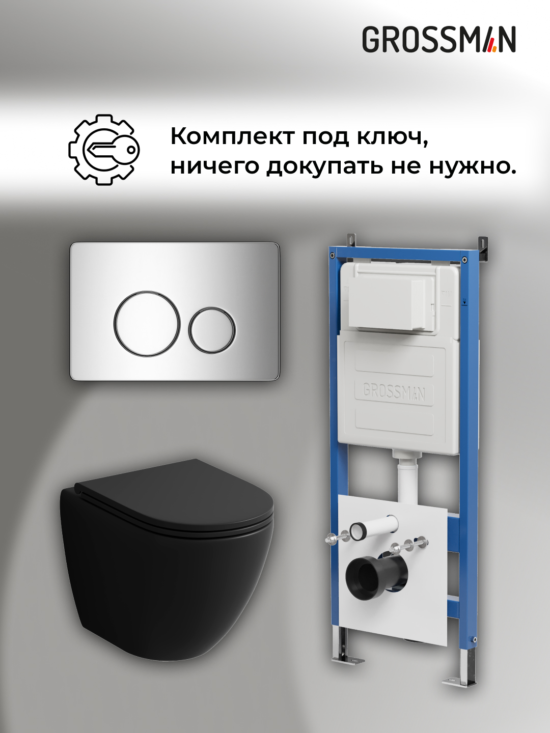 —Инсталляция + кнопка смыва + унитаз Grossman Style 97.4455BMSQ.05.10M