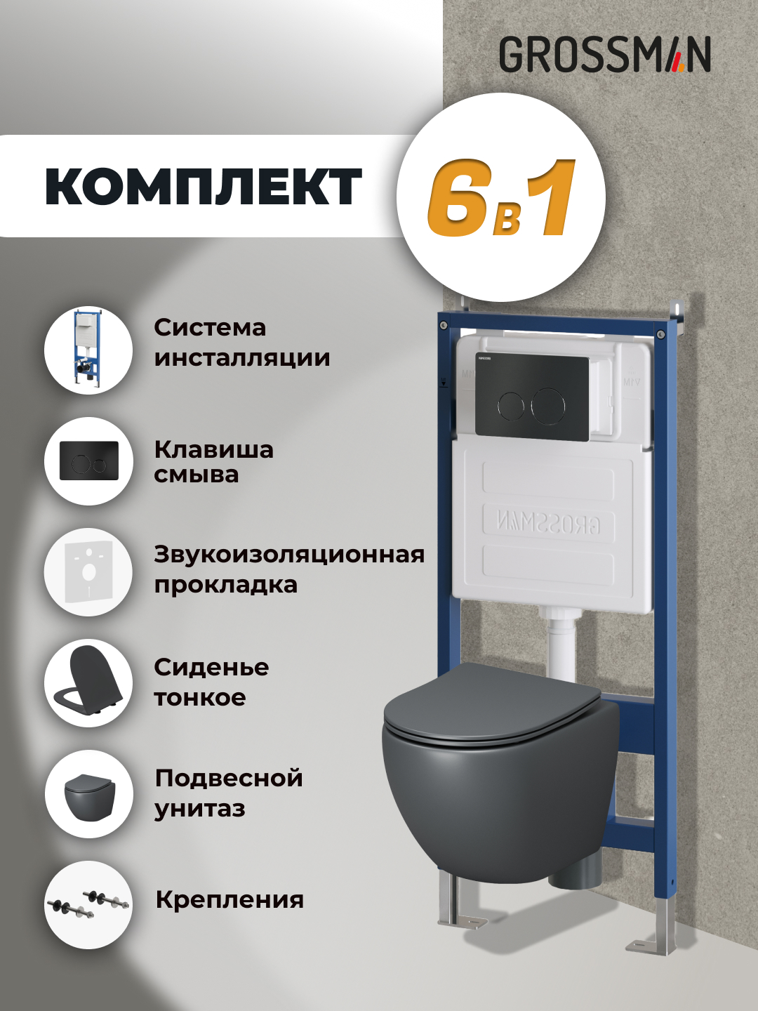 Инсталляция + кнопка смыва + унитаз Grossman Style 97.4455GMS.05.21M