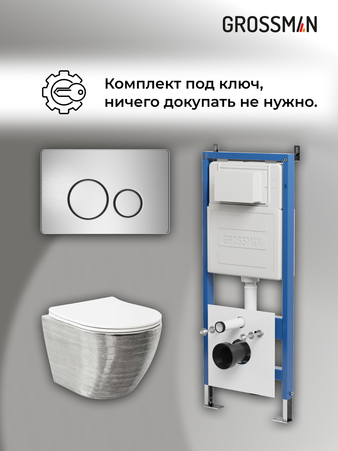 —Инсталляция + кнопка смыва + унитаз Grossman Style 97.4455SWS.05.12M