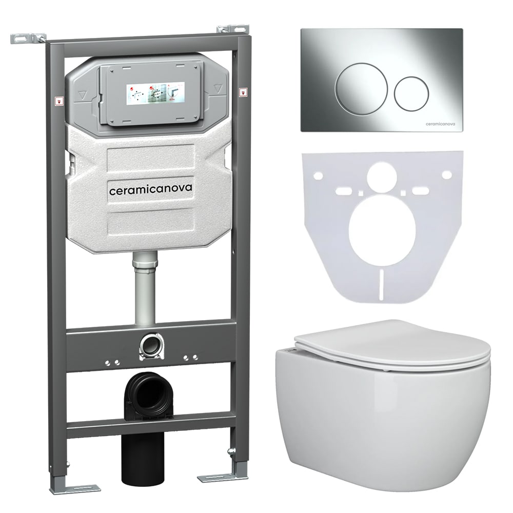 Инсталляция с кнопкой + унитаз + шумоизоляция Ceramica Nova CN3001_1001CH_1000