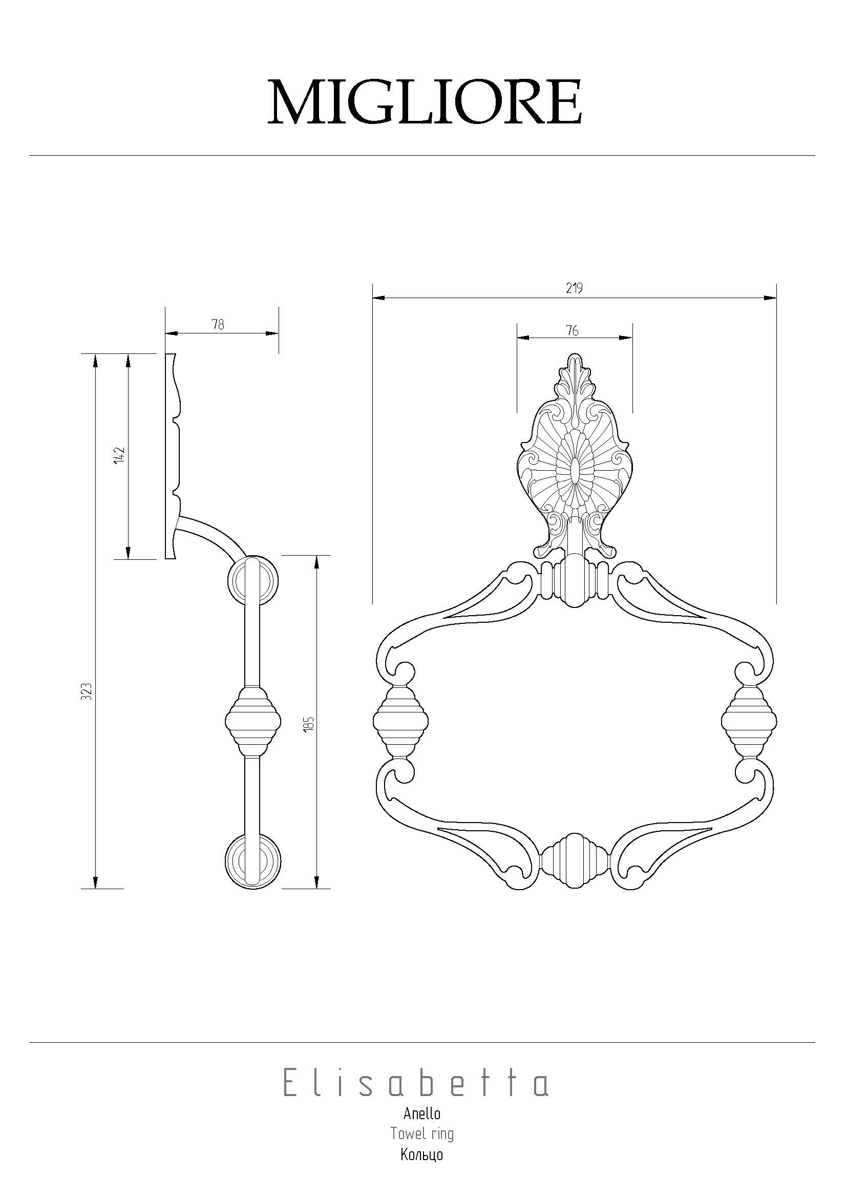 Настенное кольцо коллекции ELISABETTA бренда MIGLIORE предназначено для полотенец небольшого размера для рук и лица. Данное кольцо можно использовать также на кухне для кухонных полотенец. Розетка аксессуара имеет необычную форму, и удобный крепеж.