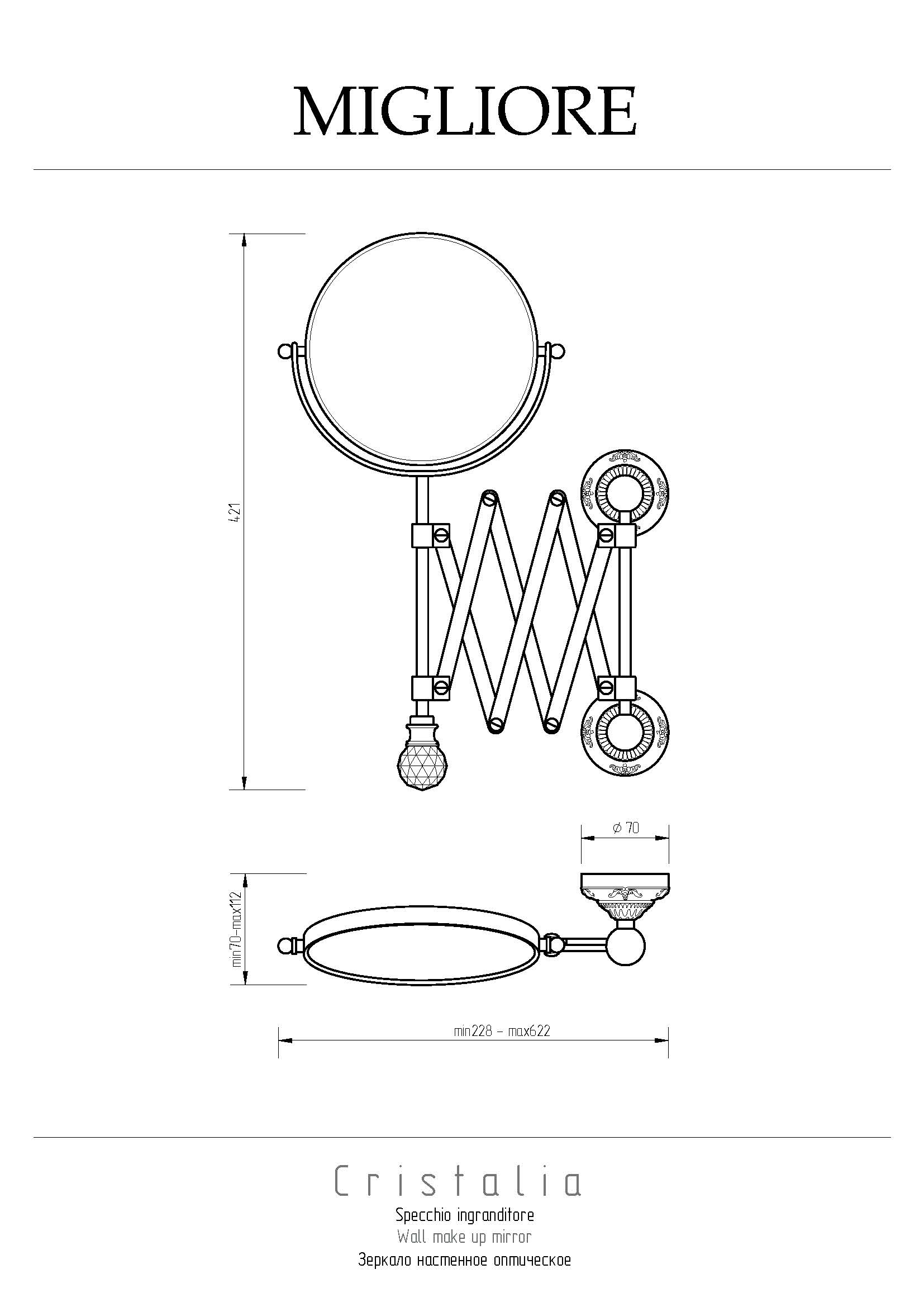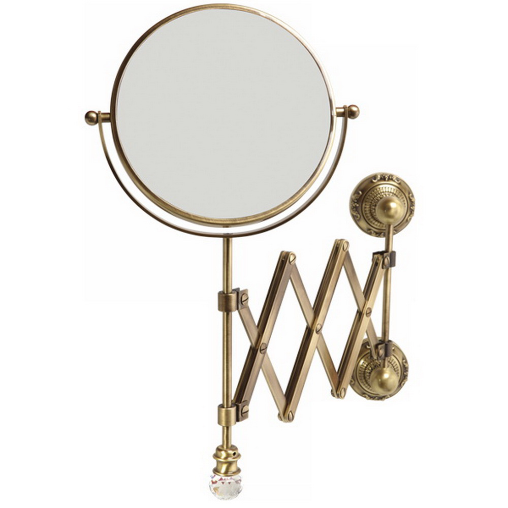 Настенное оптическое зеркало коллекции CRISTALIA бренда MIGLIORE с двумя зеркальными полотнами, одно из которых имеет двухкратное увеличение для удобства нанесения макияжа или проведения уходовых процедур. Аксессуар украшен кристаллом Сваровски.