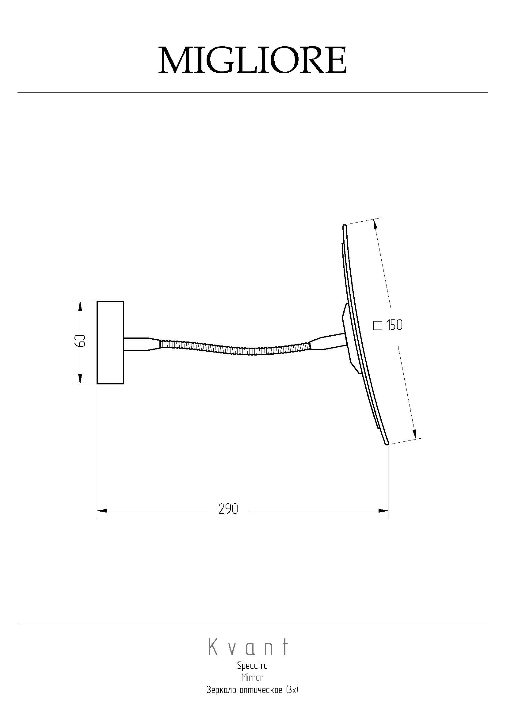 Настенное оптическое зеркало серии Kvant бренда MIGLIORE с двумя зеркальными полотнами, одно из которых имеет трехкратное увеличение для удобства нанесения макияжа или проведения уходовых процедур.