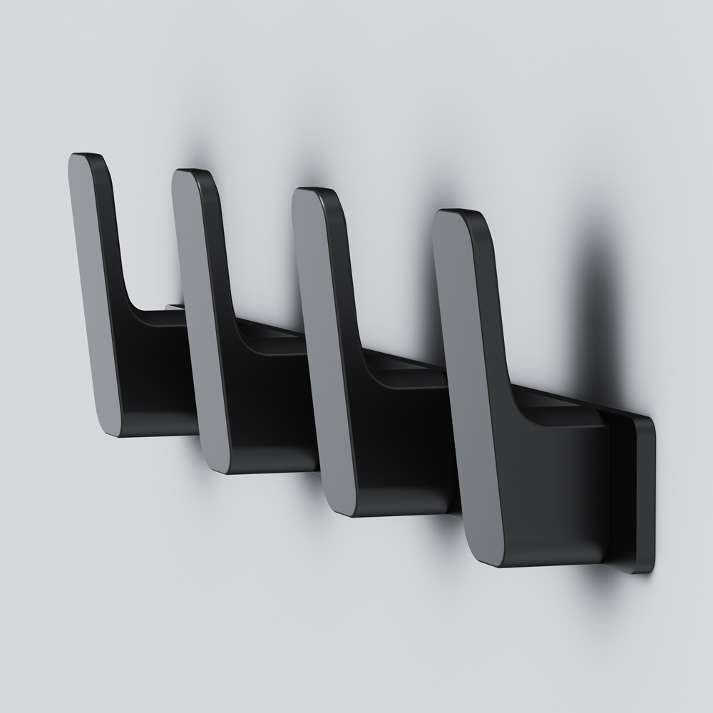 Для ценителей функционального использования пространства ванной комнаты создан набор крючков для полотенец которые по форме так напоминают современные смартфоны. Крючки выполнены в трендовом черном оттенке с матовым покрытием.