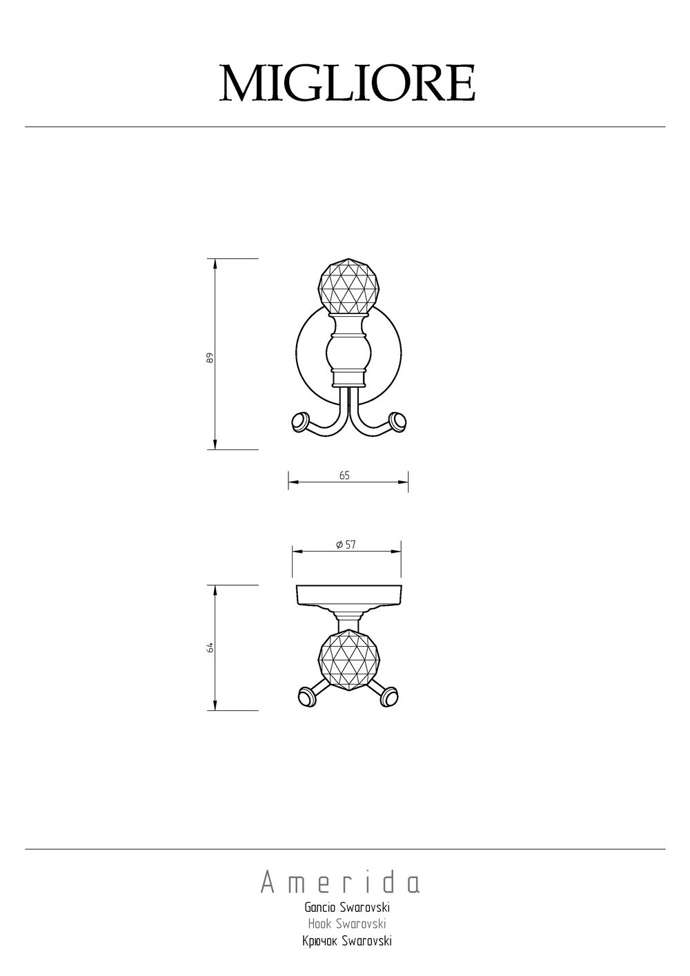 Крючок коллекции AMERIDA  бренда MIGLIORE   - это незаменимый аксессуар для ванной комнаты. Вы можете использовать данный крючок также в интерьере кухни или других комнат. Аксессуар украшен кристаллом Сваровски.