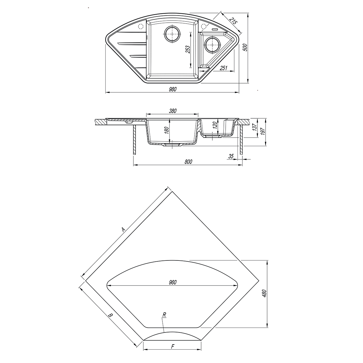 - Глубина чаш: 180 мм/120 мм