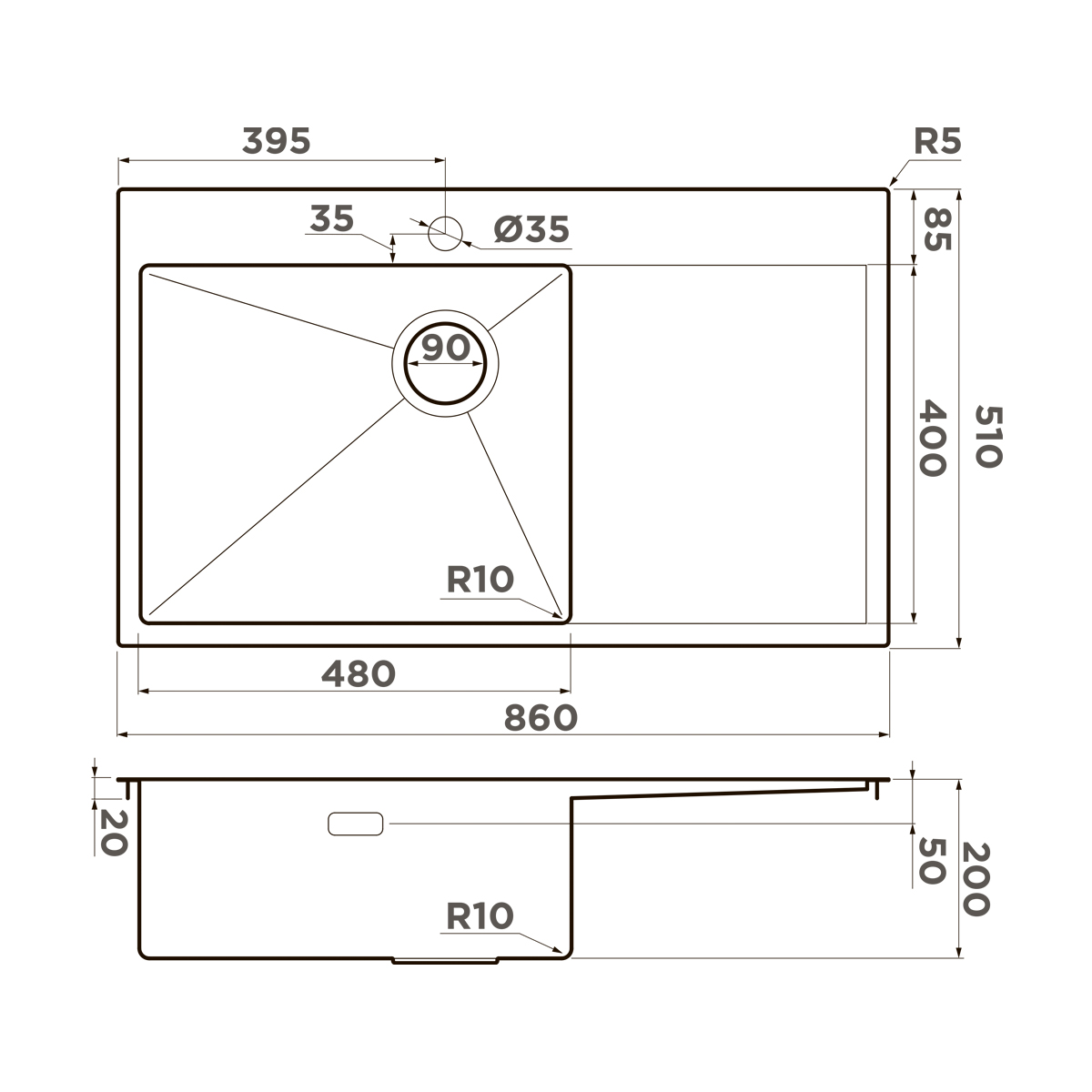 —Кухонная мойка Omoikiri Akisame 86-L Side 4997043 86х51 цвет графит