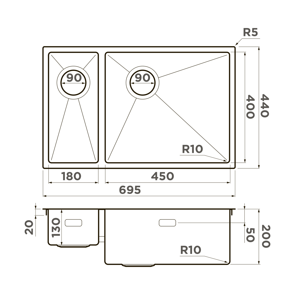 Кухонная мойка Omoikiri Taki 69-2-U/IF-R Side 4993184 70х44 цвет светлое золото