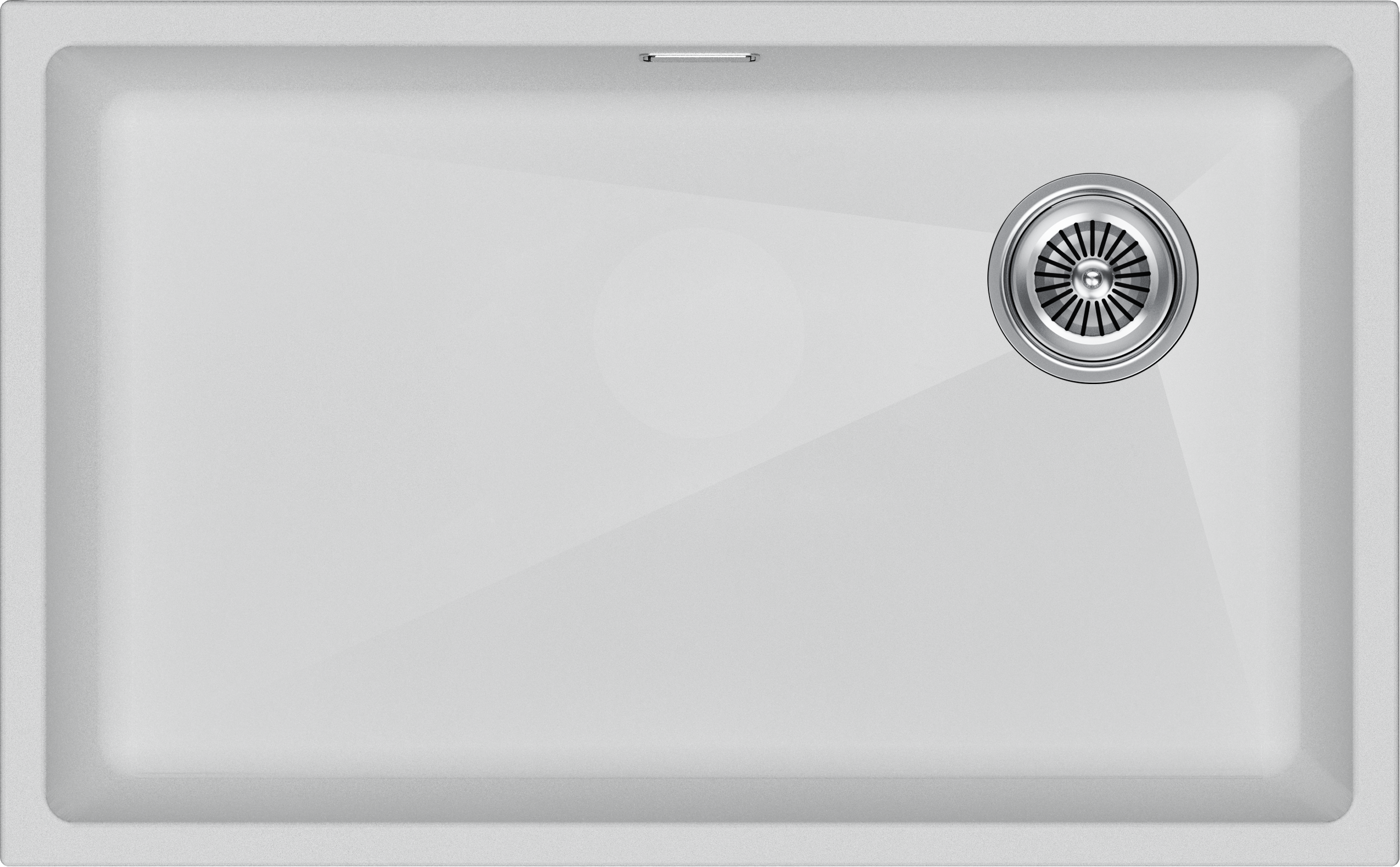 Внутренние грани мойки направлены к сливу под индивидуальным углом для быстрого ухода воды.