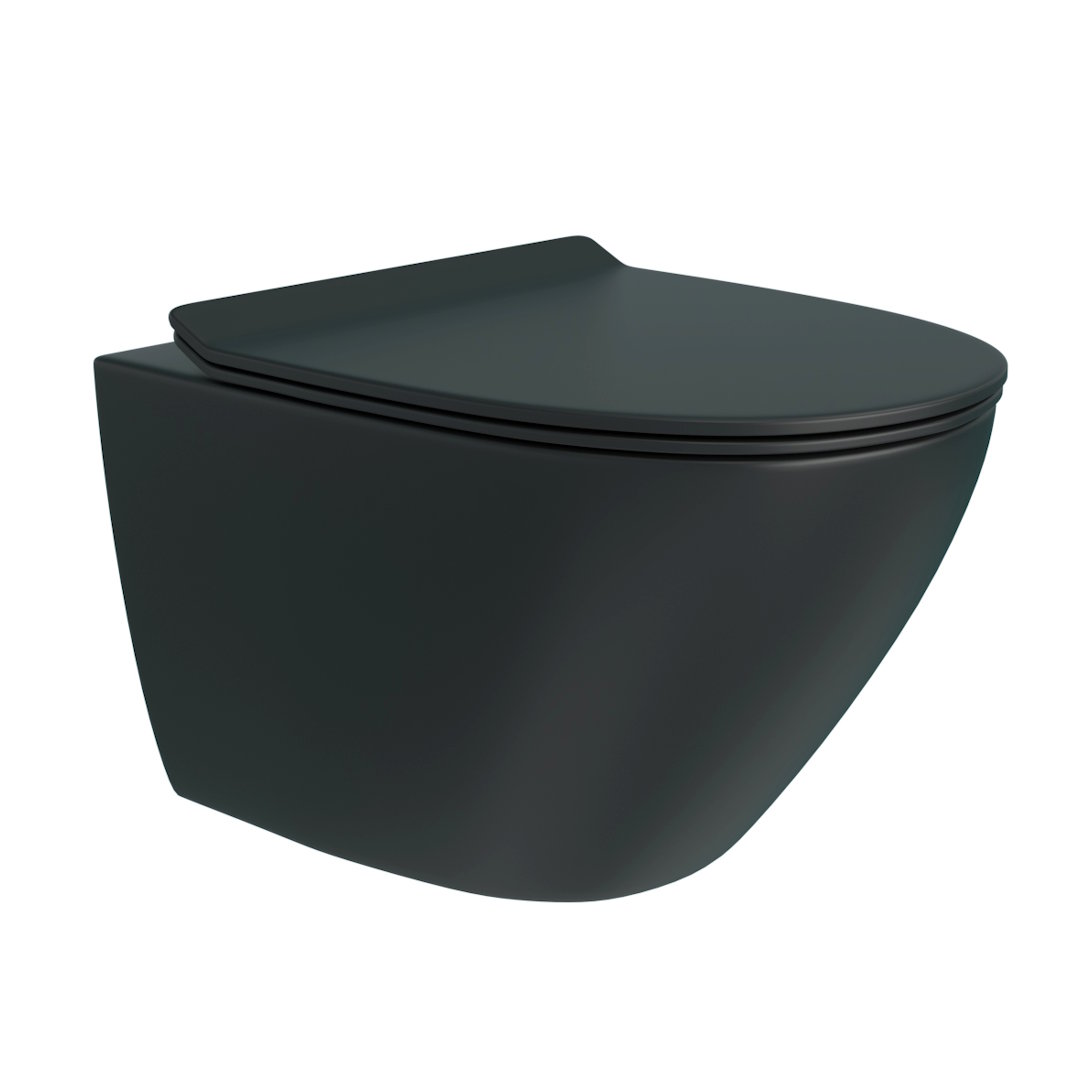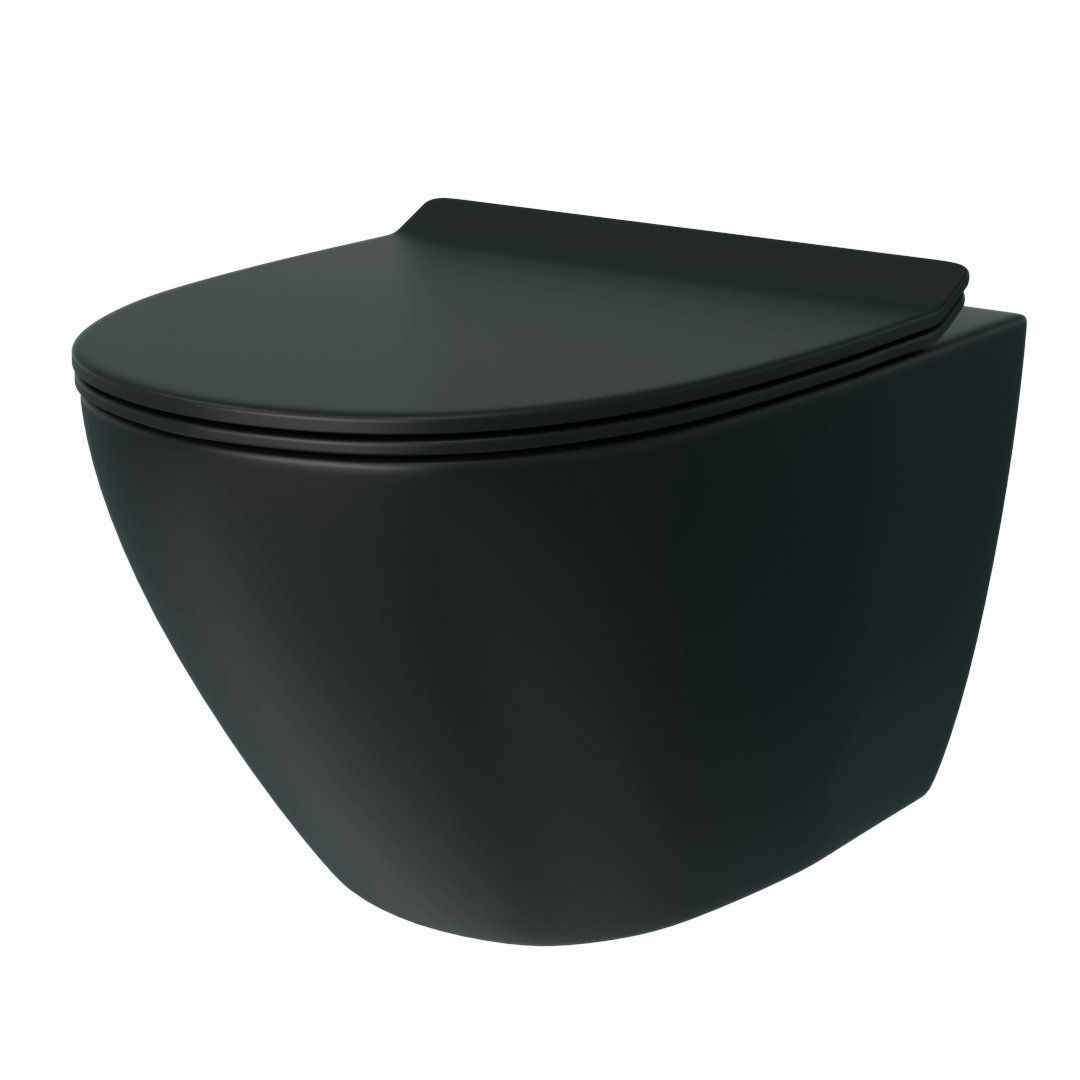Унитаз подвесной Teymi Lina T40114 черный с сиденьем микролифт безободковый смыв торнадо