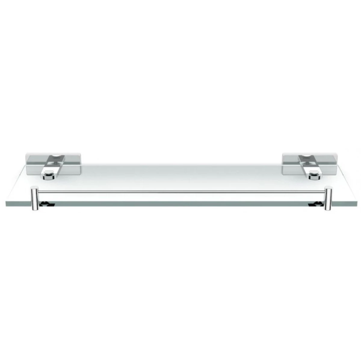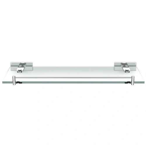 Прямая стеклянная полка для ванной 10951D - образец изящества и воздушной невесомости. Идеально гладкая поверхность стекла закреплена в тонком, но прочном каркасе из белого хромированного металла. Надежный держатель легко фиксируется на стене. На полке красиво и безопасно разместится косметика и туалетные принадлежности.