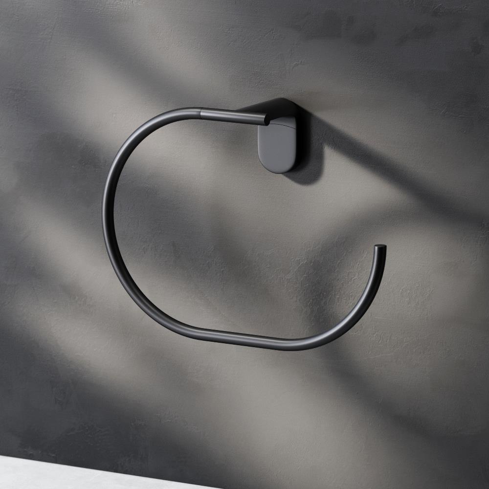 - Металлический аксессуар в черном цвете для хранения полотенец.